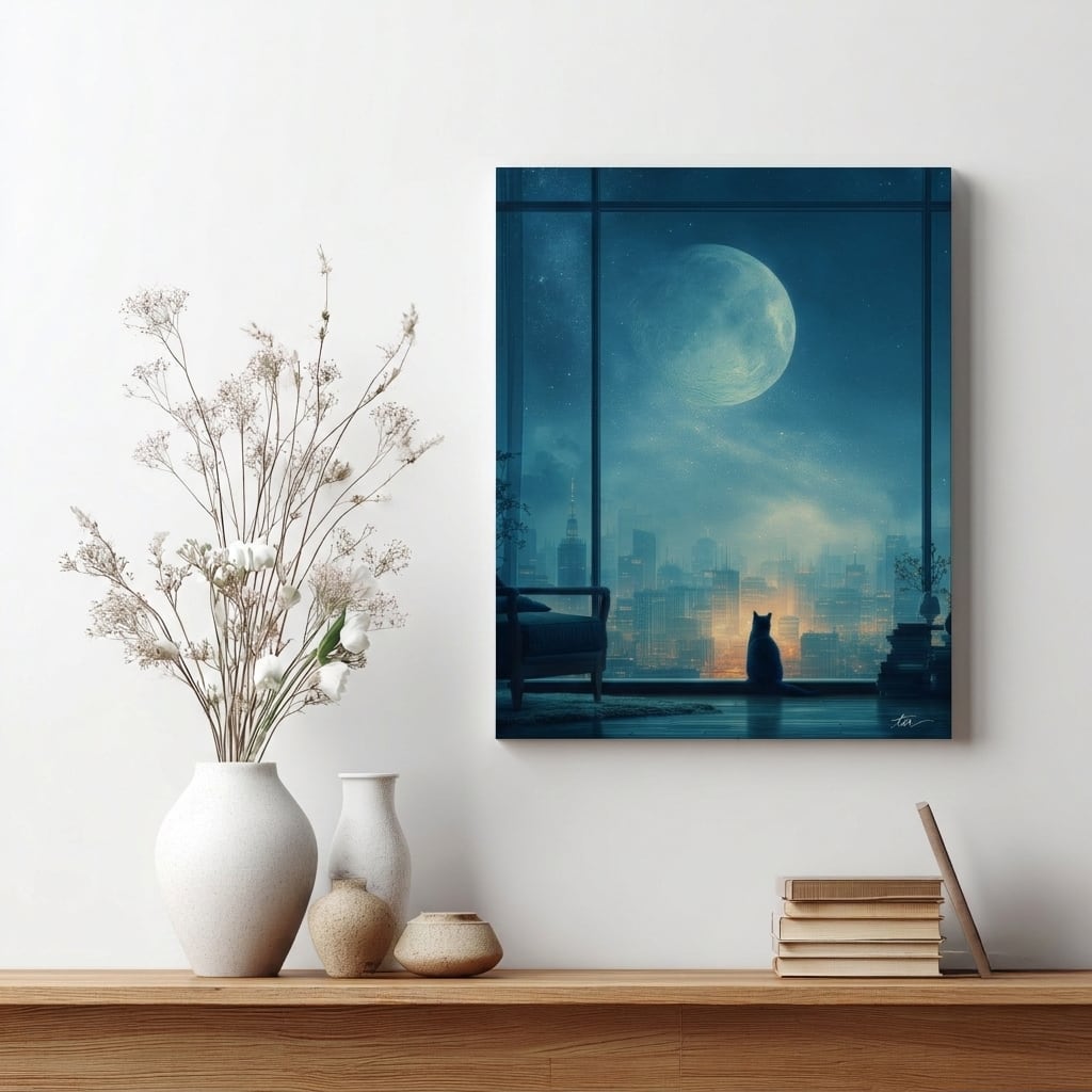 「- Amber - (琥珀色の月明かり)」 琥珀色に輝く巨大な月が、今日一日の疲れを優しく溶かしていくお部屋。積まれた本と窓辺で待つ猫が、あなただけの静かな夜ふかしの時間を約束します。あたたかな光に包まれる特等席へ、おかえりなさい。 「prologue」が描く幻想的な世界を、そのままあなたのお部屋へ。 ふと見上げた夜空のような、静かな物語のはじまりを告げるキャンバスアートです。 高品質なキャンバスにプリントしており、フレーム不要でそのまま飾っていただけます。 ◾️サイズは以下の2種類からお選びいただけます: ▶︎ F3号 W273×H220×D18mm ¥9,800 ▶︎ F6号 W410×H318×D18mm ¥14,800 ※どちらのサイズも、全国一律 ¥500の送料を頂いております。 複数点ご購入の場合も、送料は ¥500のみです。 その他のサイズをご希望の方は一度お問い合わせください。 【 本格的なアート体験をお届けする仕様 】 ・高精細・高品質なプリント 高品質な印刷技術により、鮮やかで濃厚な仕上がりです。 ・伝統的なキャンバス生地 実際の絵画にも使われる本格的な「麻100%」の生地を使用。 側面にアンティークな釘打ちを施した、温かみと重厚感のある仕上がりです。 【 飾り方について 】 軽い素材のため、市販の画鋲やフックで簡単に壁掛けが可能です。 また、壁に穴を開けられない場合でも、デスクやチェストの上にそっと立て掛けるだけで、お部屋に小さな「非日常への窓」が生まれます。 ※壁掛け用の吊り具は付属しておりません。 ◾️ご購入前にご確認ください ・ お届けについて 本商品は、受注製作品となります。 少しでも早くお手元へお届けするため、提携する専門の印刷工場より直接お客様へ発送いたします。 発送までに営業日で約8日程度かかります。 商品は、印刷所にてビニール包装+ダンボール梱包を行い、ご自宅へ直接配送されます。 (※納品書や金額のわかるものは同封されませんので、ギフトとしてもご安心ください) また、受注生産の性質上、お客様のご都合による返品・交換はお受けしておりません。 商品には万全を期しておりますが、万が一、破損や誤送などがございましたら、到着後3日以内にご連絡ください。 ・ 色味について モニター環境や印刷方法の特性により、実物の色味が画面表示と異なる場合があります。 詳しくはショッピングガイドの「色味について」をご確認ください。 ▼ ご注文前に必ずご確認ください 下記URLより、キャンバスの注意事項、ショッピングガイドがご確認いただけます。 ・キャンバスアートの注意事項について https://shop.lustry.jp/p/00016 ・ショッピングガイド https://shop.lustry.jp/p/00003