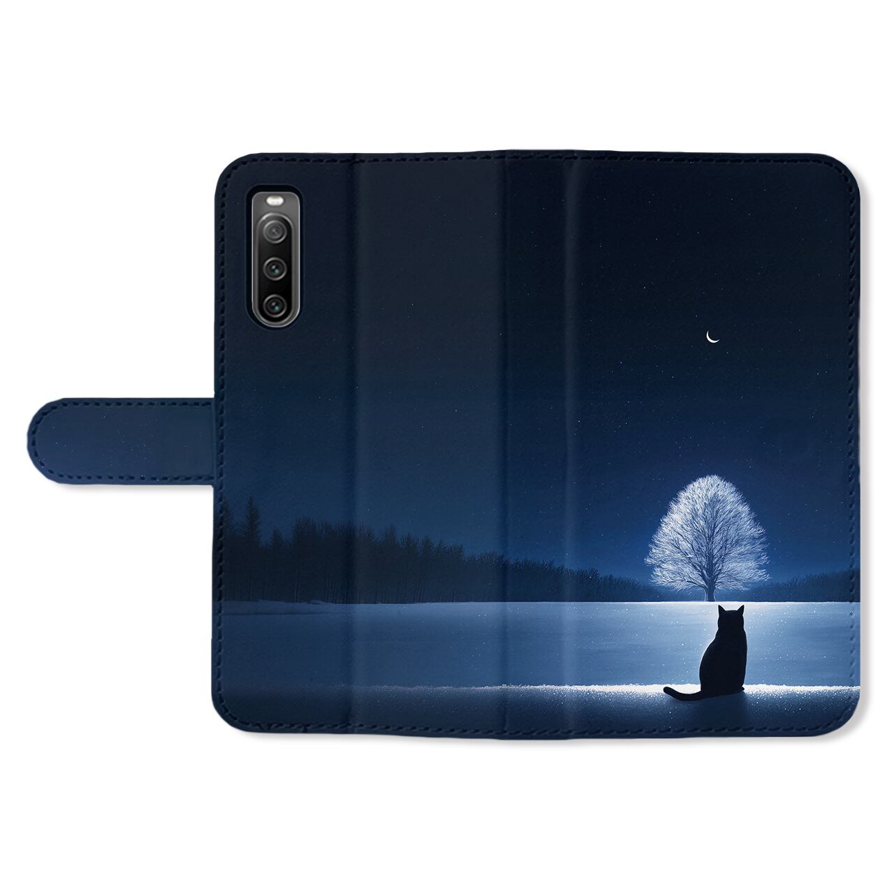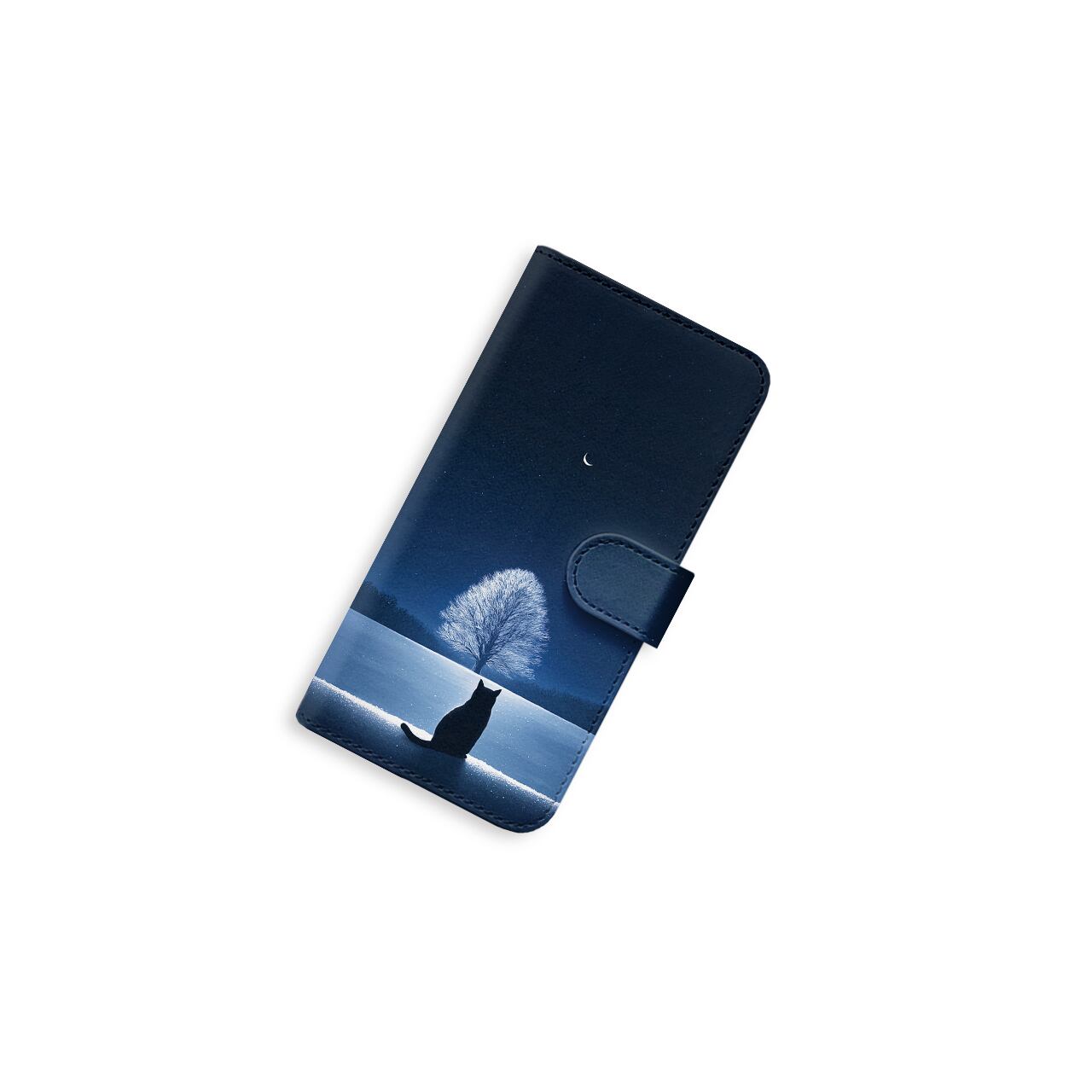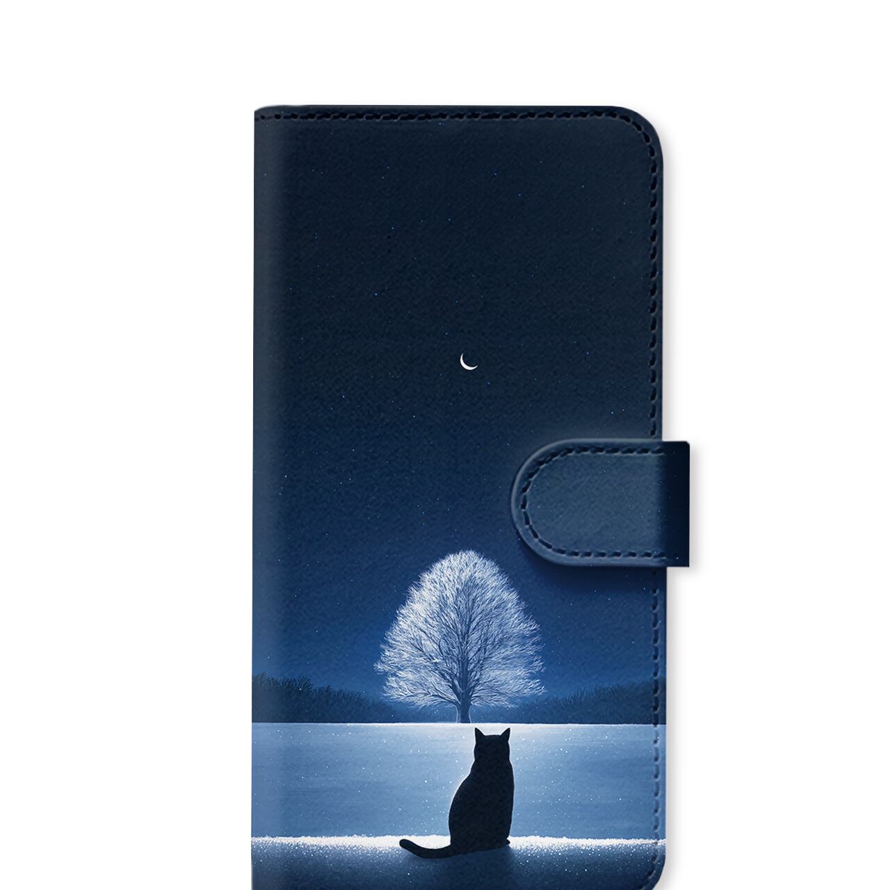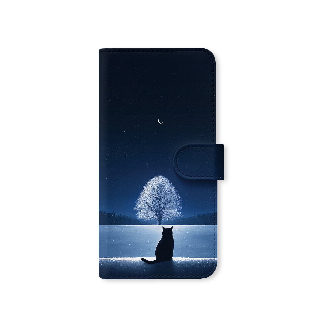 蒼き夜の道標|全機種対応 ベルト付き 手帳型スマホケース 猫 星空 宇宙 幻想的 雪景色