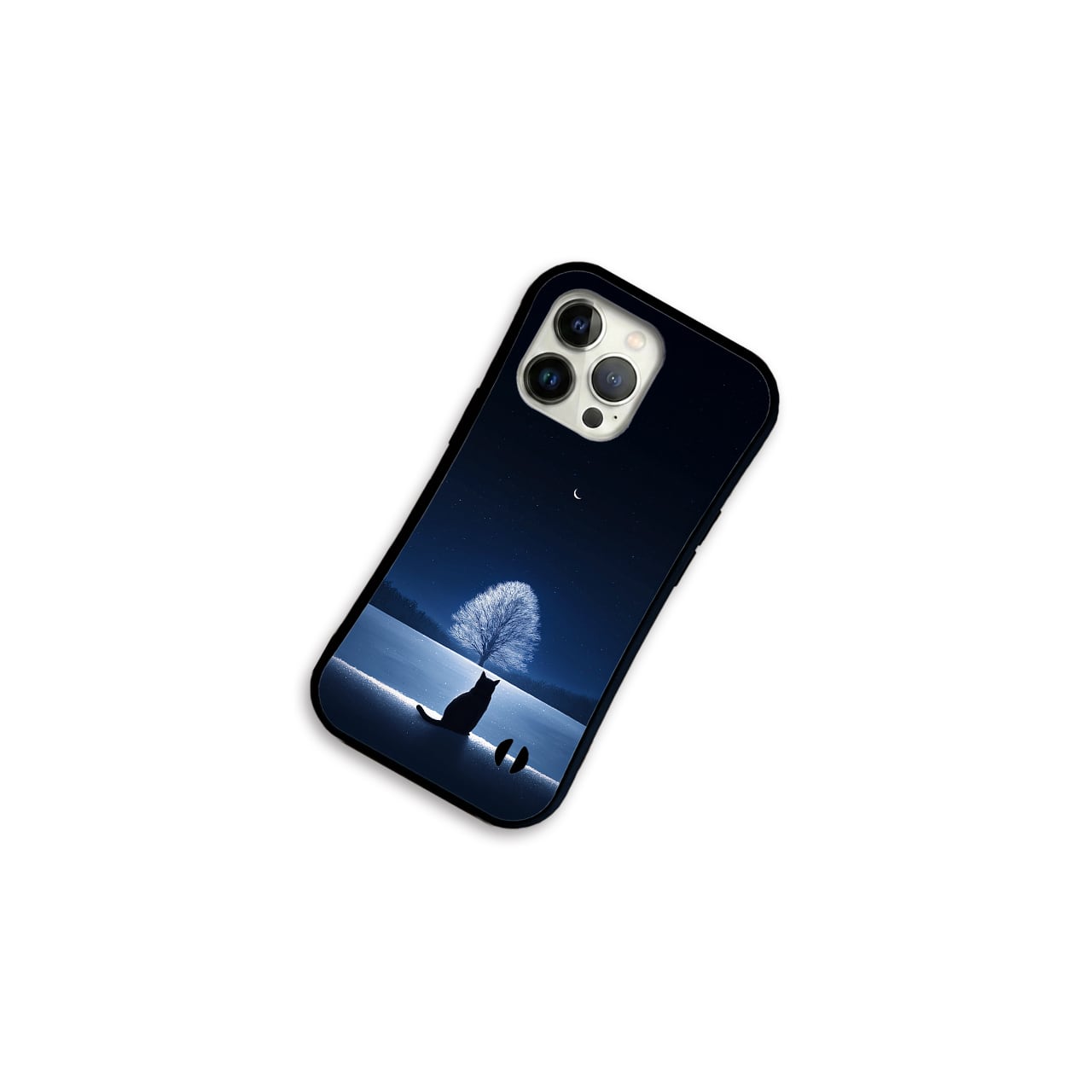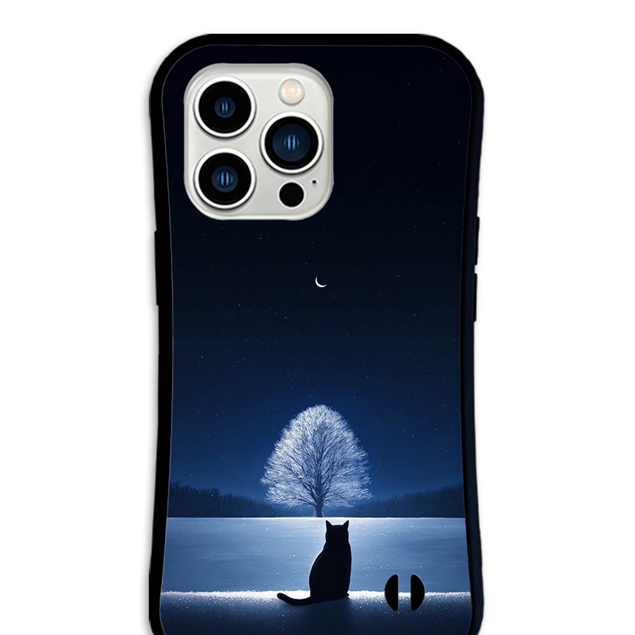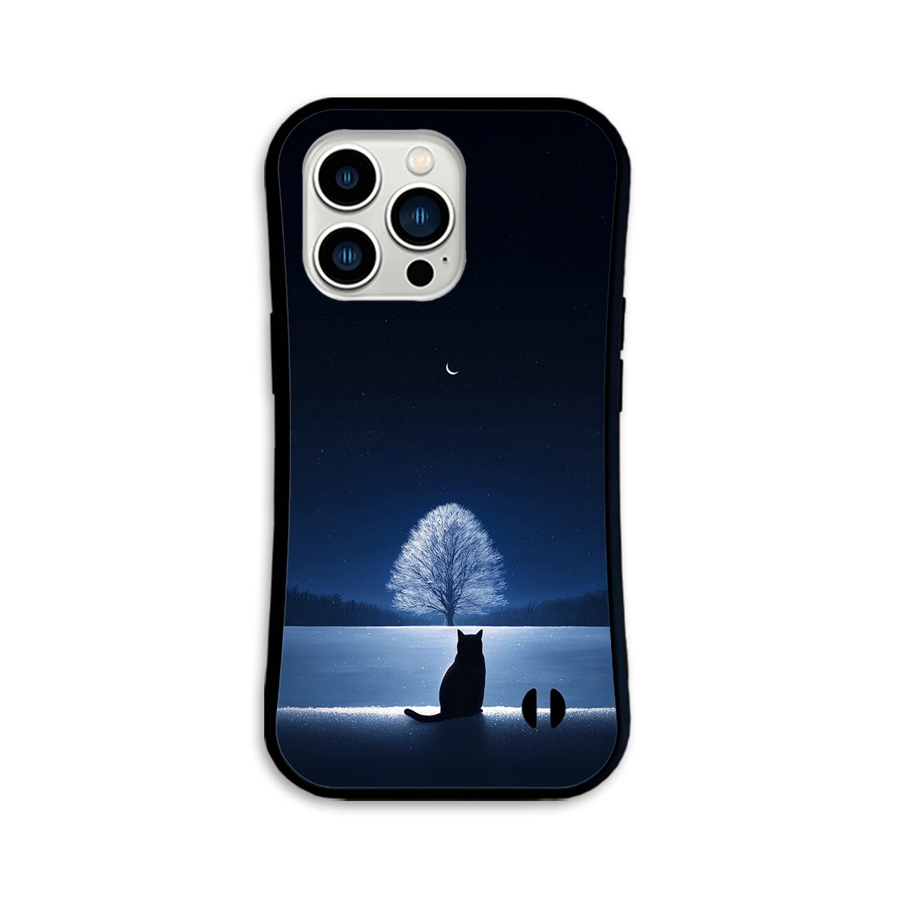 雪 青 夜空 黒猫 月 大樹 幻想的 耐衝撃 グリップケース 冬 雪景色 風景 ファンタジー iPhoneケース