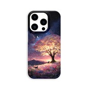 桜月夜の約束 iPhone17/16/15対応 iPhoneケース スマホケース 軽量 黒猫 幻想的 三日月 春 星空