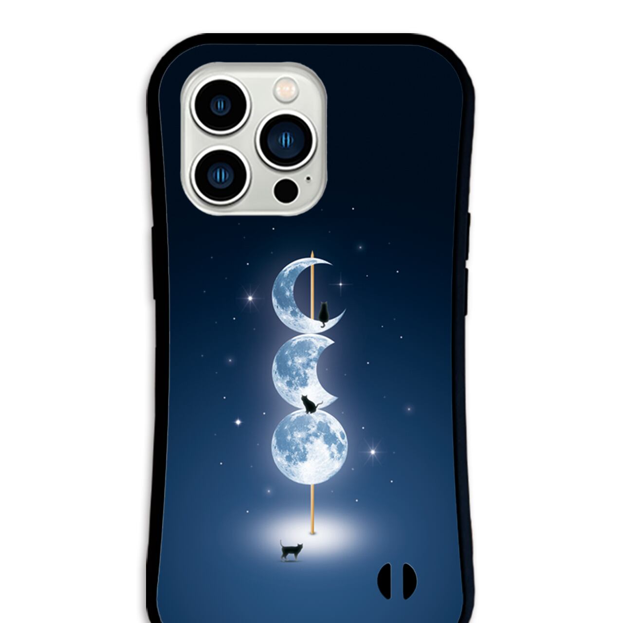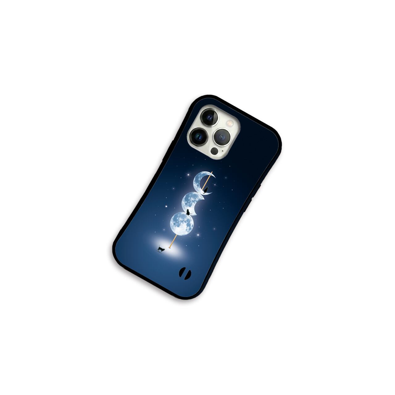 宵待ちの月団子 iPhone17/16/15対応 グリップケース iPhoneケース スマホケース 耐衝撃 黒猫 幻想的 三日月 星空 満月