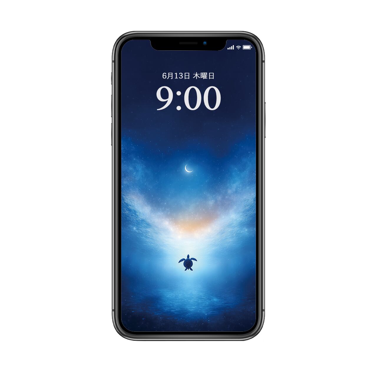 【高画質】星海の果て 壁紙 スマートフォン用 海 三日月 星空 カメ 幻想的 青
