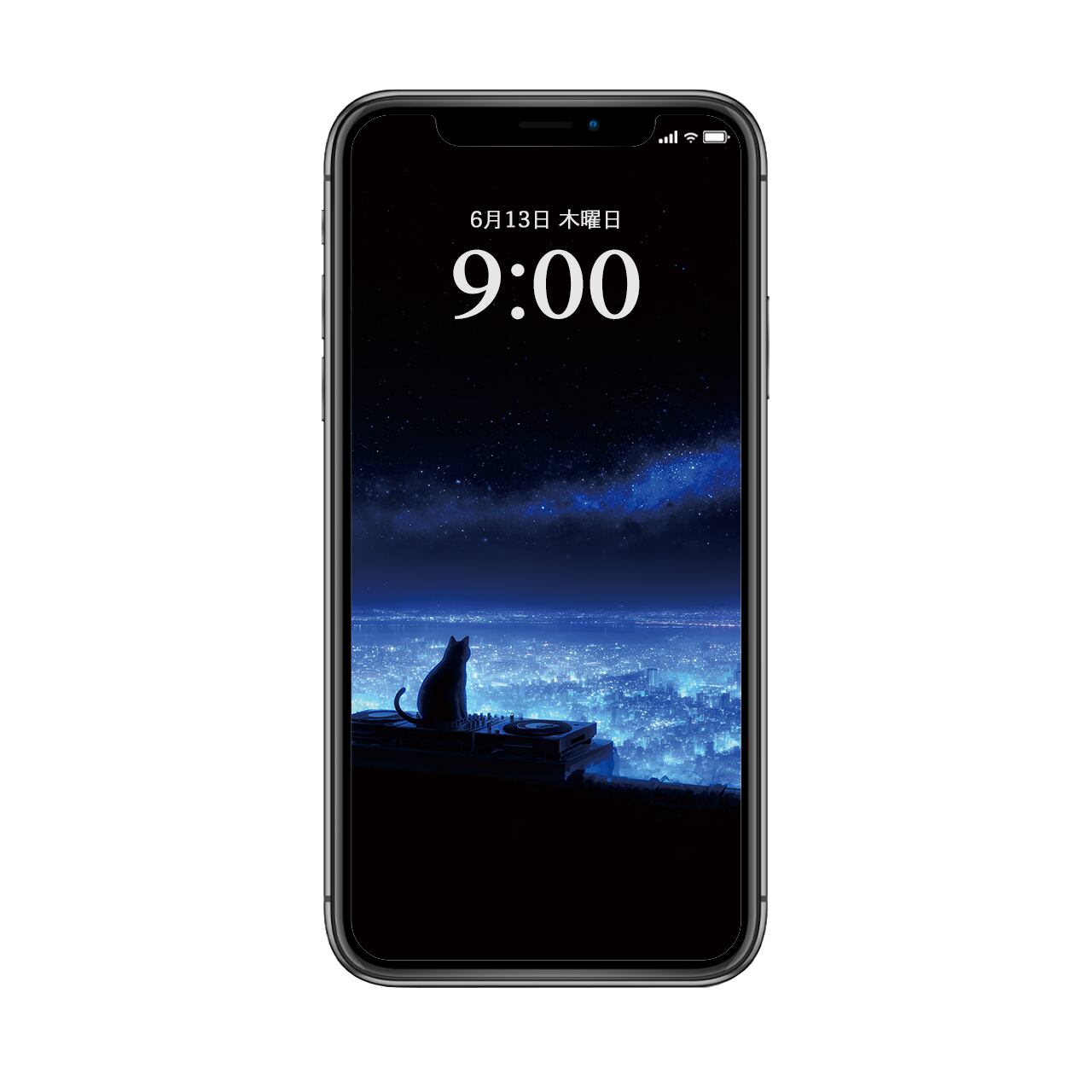 【高画質】星屑のサウンドトラック 壁紙 スマートフォン用 青 星空 黒猫 街並み 音楽