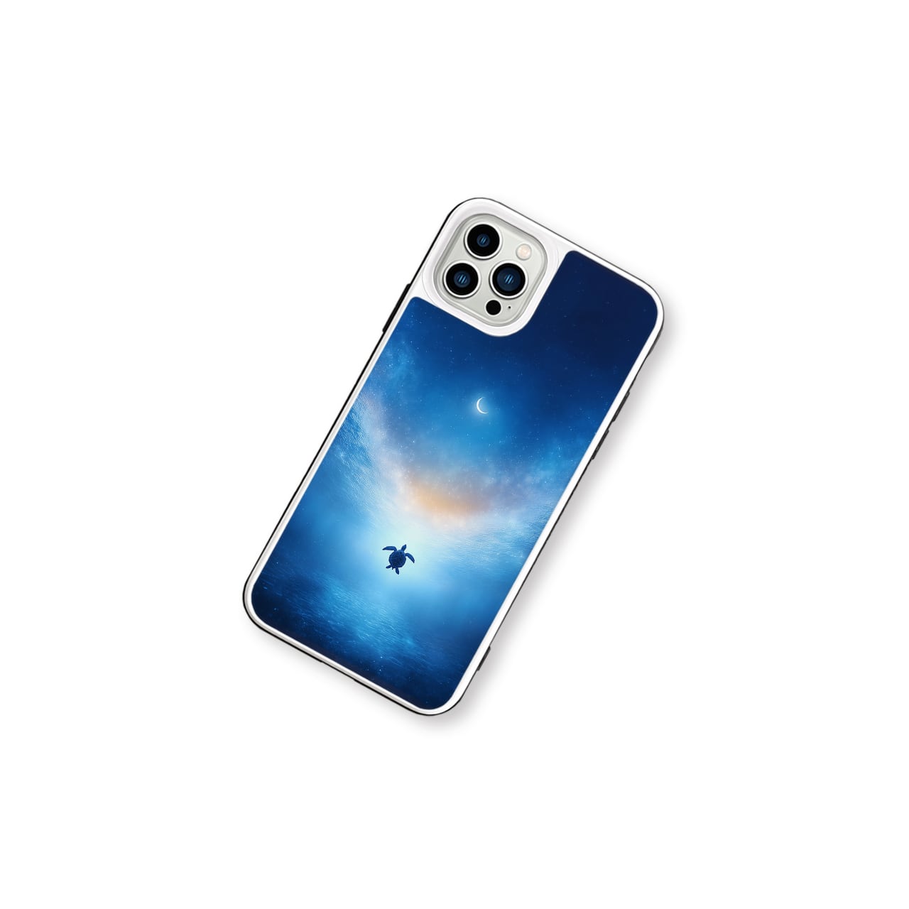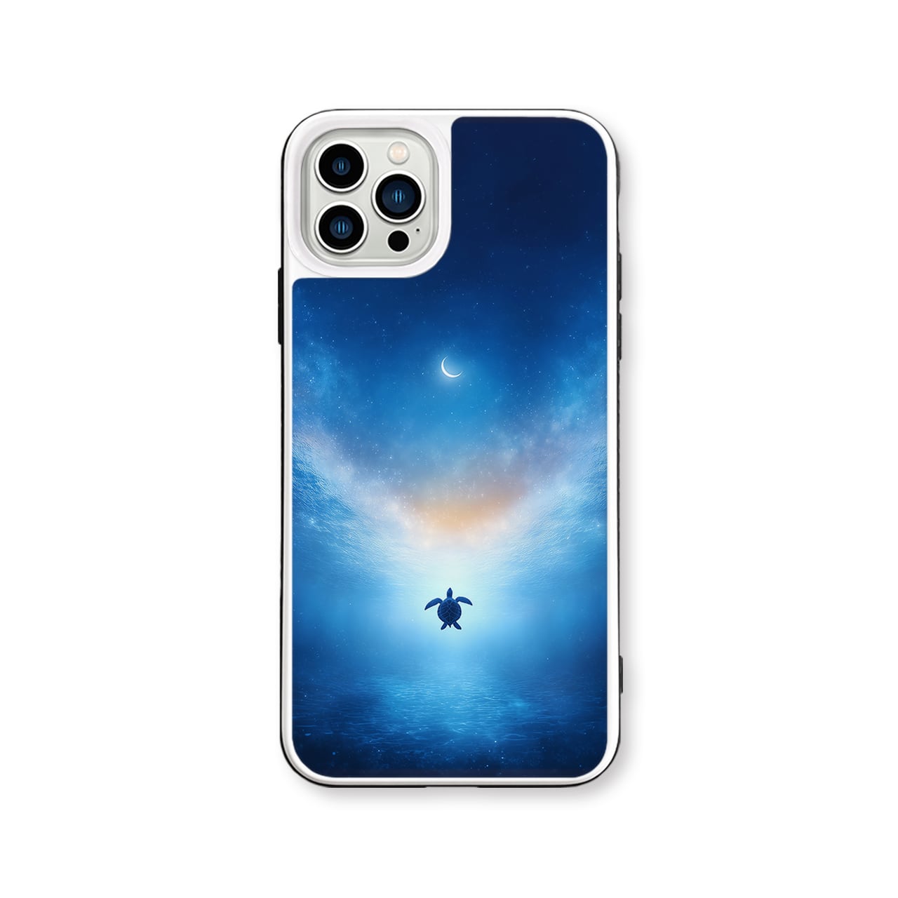 星海の果て|iPhone17/16/15/14/13 全機種対応 強化ガラス スマホケース 海 三日月 星空 カメ 幻想的 青