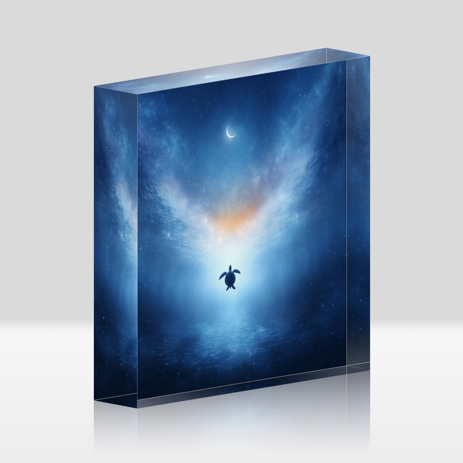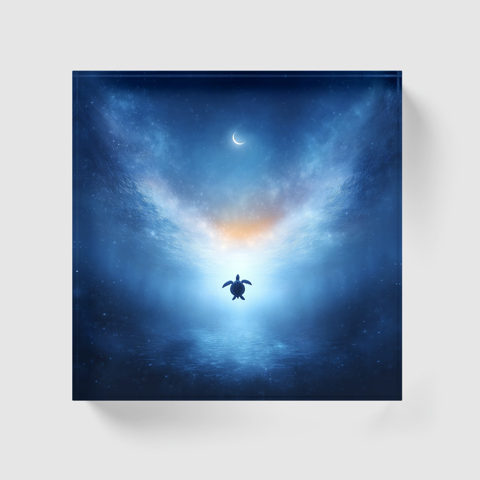 星海の果て | アクリルブロック インテリア 幻想アート ブックスタンド ペーパーウェイト 置物 ギフト 透明感 浄化 厚さ2cm 重厚感 海 三日月 星空 カメ 幻想的 青