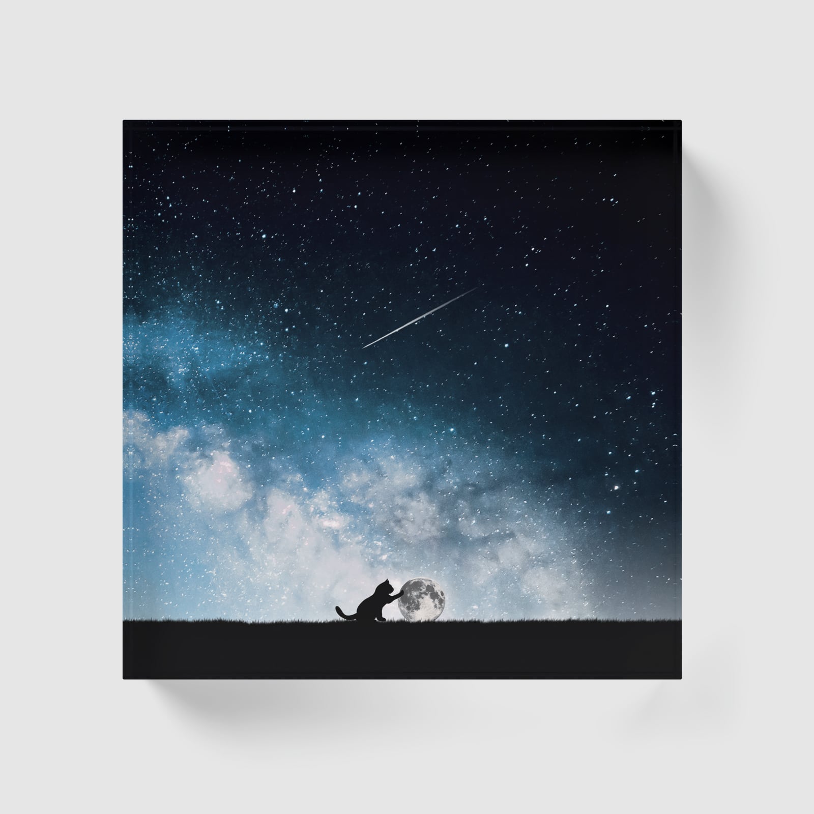 星空からの落とし物(little Moon) | アクリルブロック インテリア 幻想アート ブックスタンド ペーパーウェイト 置物 ギフト 透明感 浄化 厚さ2cm 重厚感 黒猫 ねこ 星空 月 満月