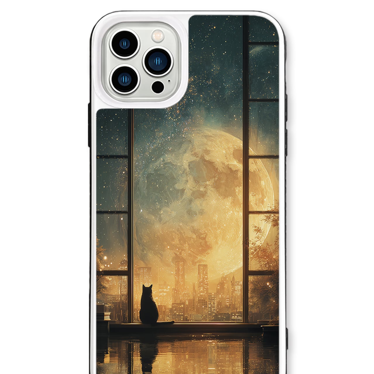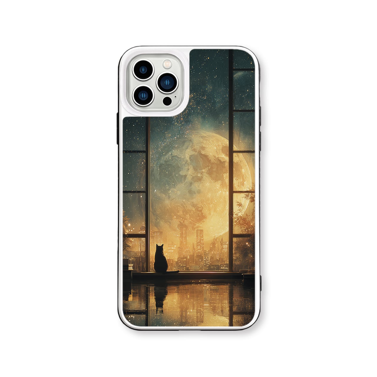 - Amber - (アンバー / 琥珀色の月明かり)|iPhone17/16/15/14/13 全機種対応 強化ガラス スマホケース ねこ 部屋 幻想的 星空 月