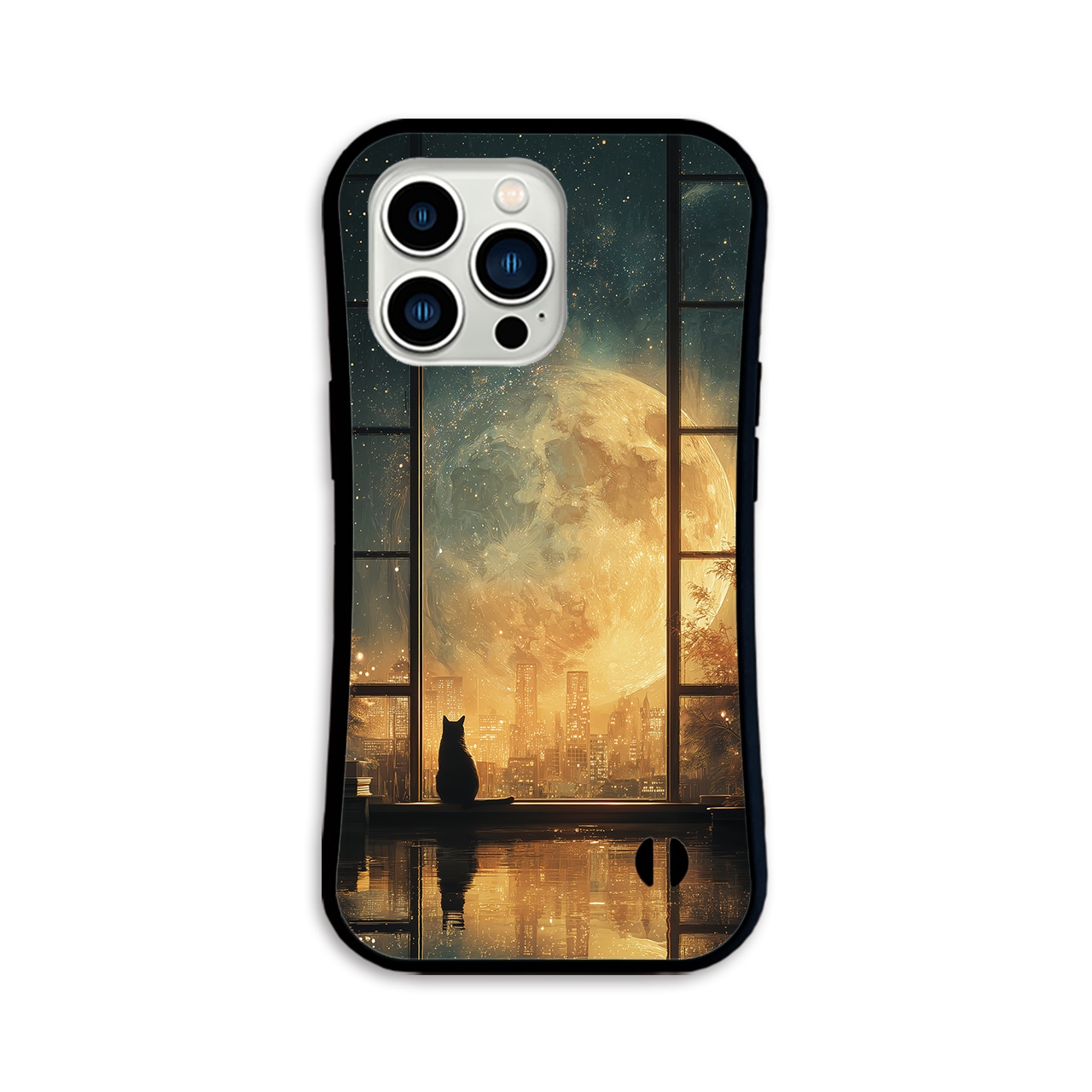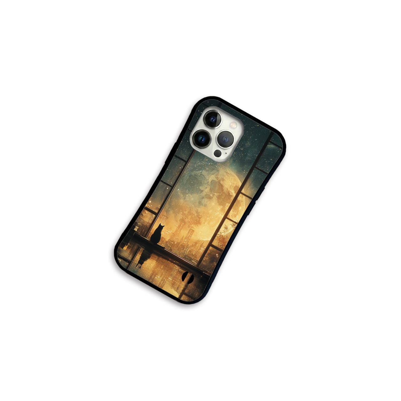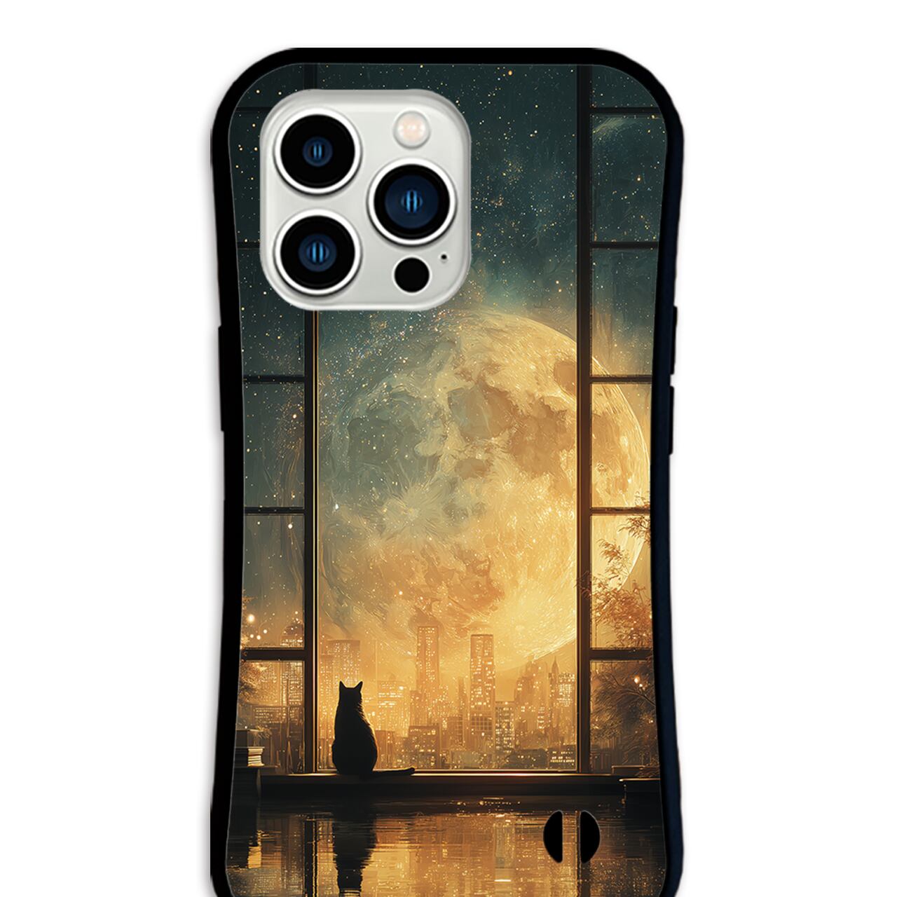 - Amber - (アンバー / 琥珀色の月明かり)| iPhone17/16/15対応 グリップケース iPhoneケース スマホケース 耐衝撃 部屋 幻想的 星空 月 猫