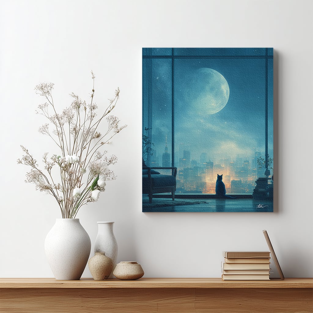 ふと見上げた夜空のような、静かな物語のはじまりを告げるキャンバスアートです。