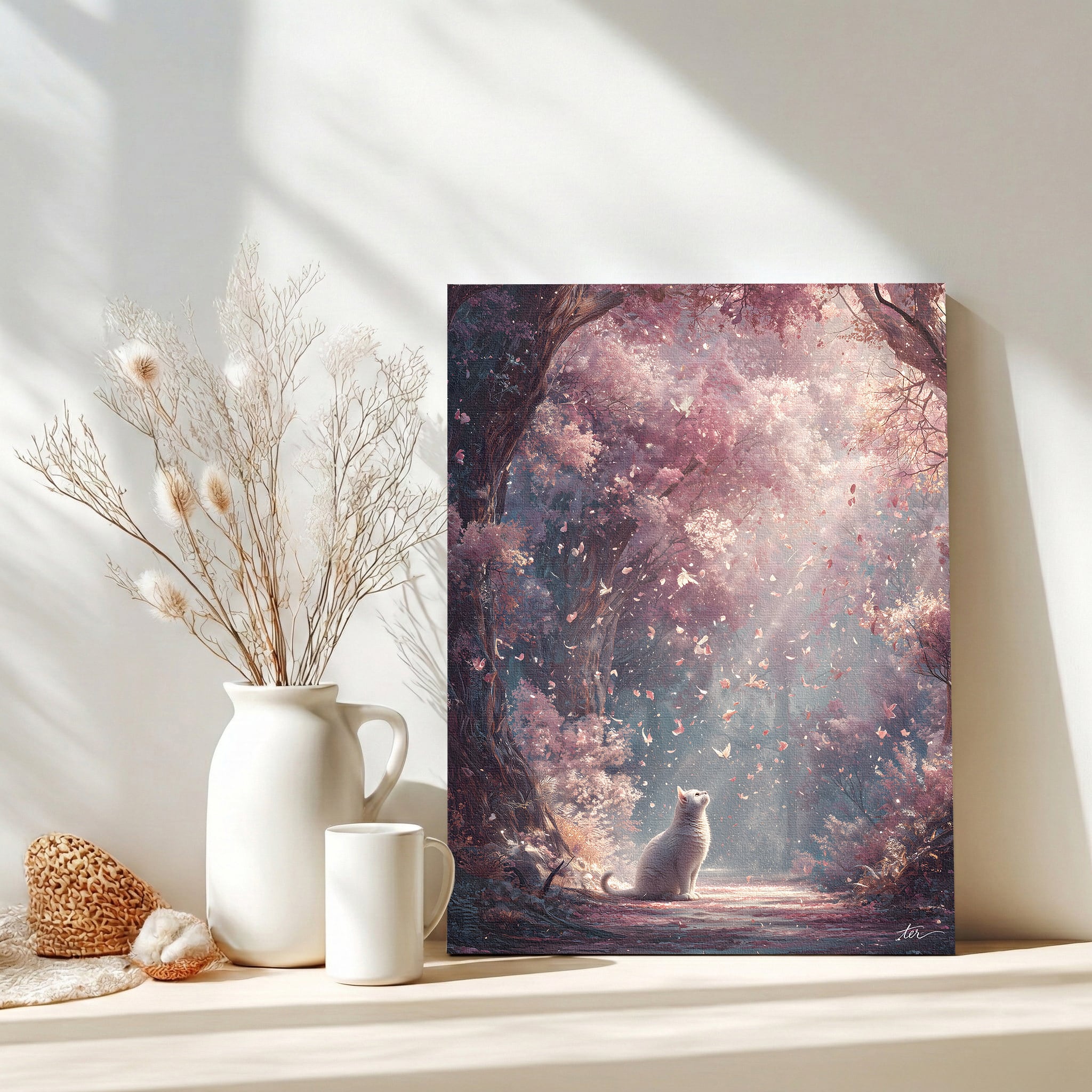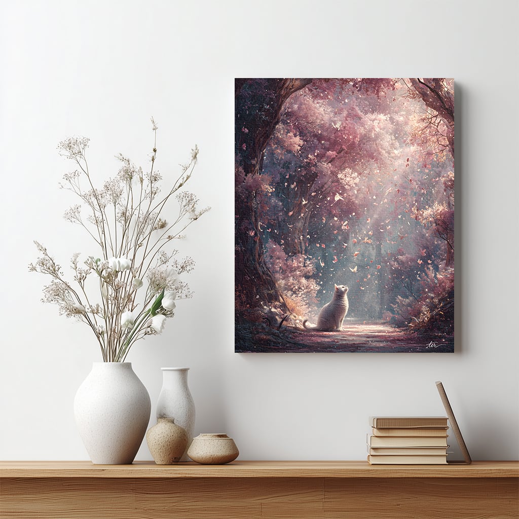 春光の祝福 | キャンバスアート アートパネル インテリア 森 桜 白猫 春