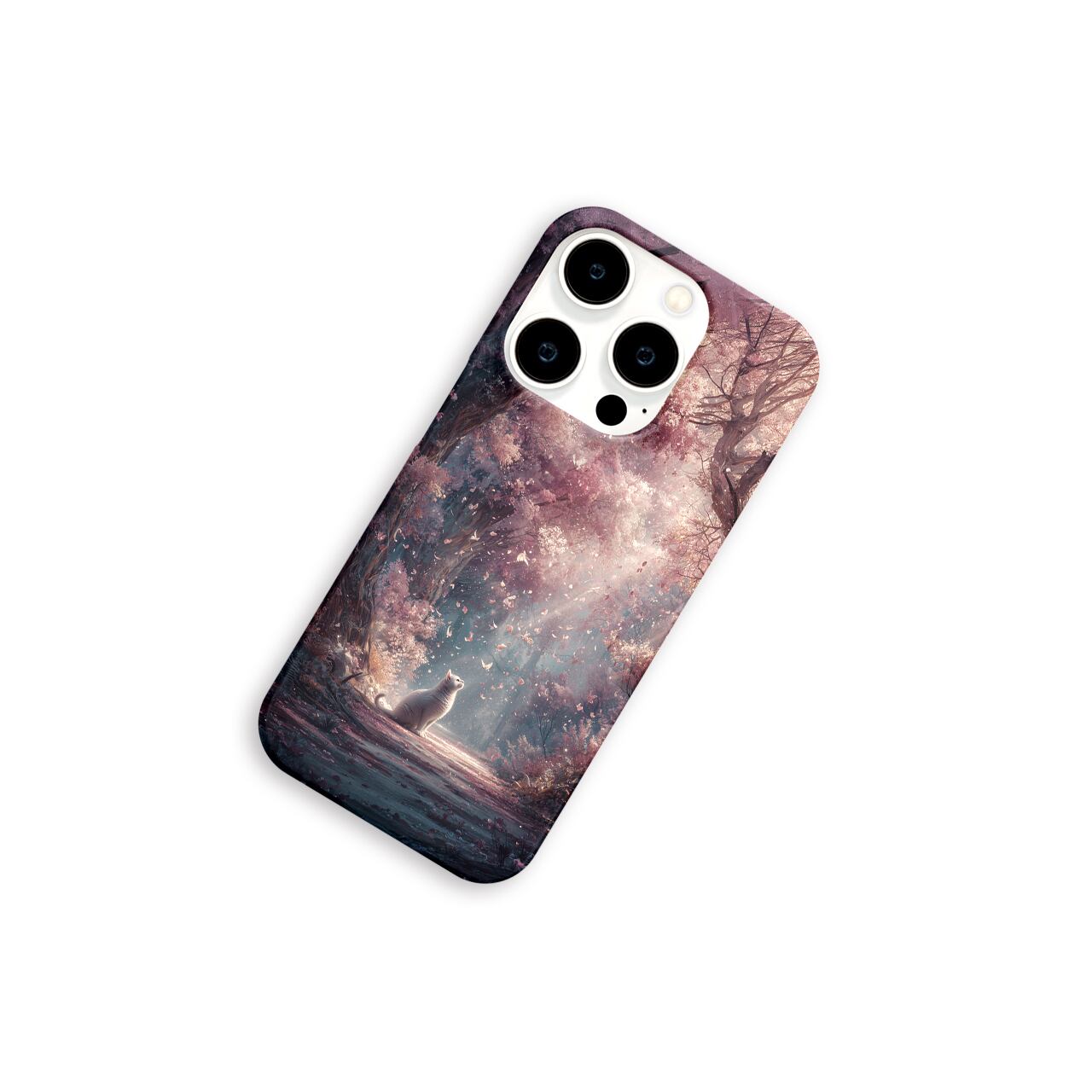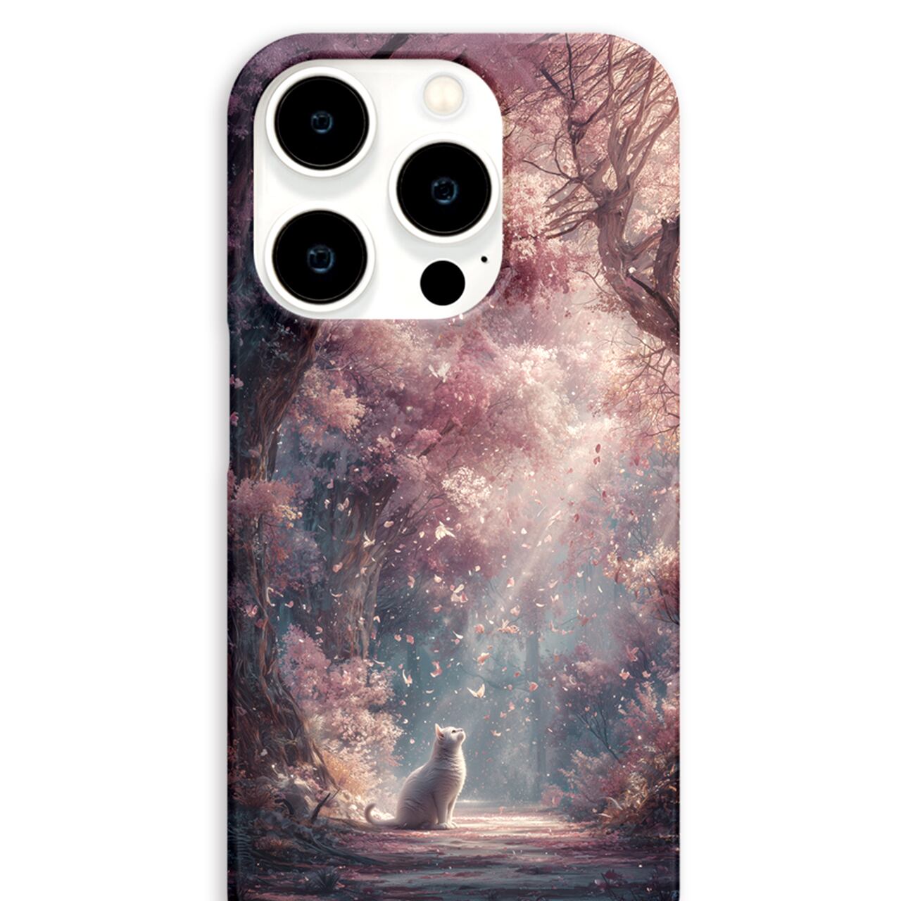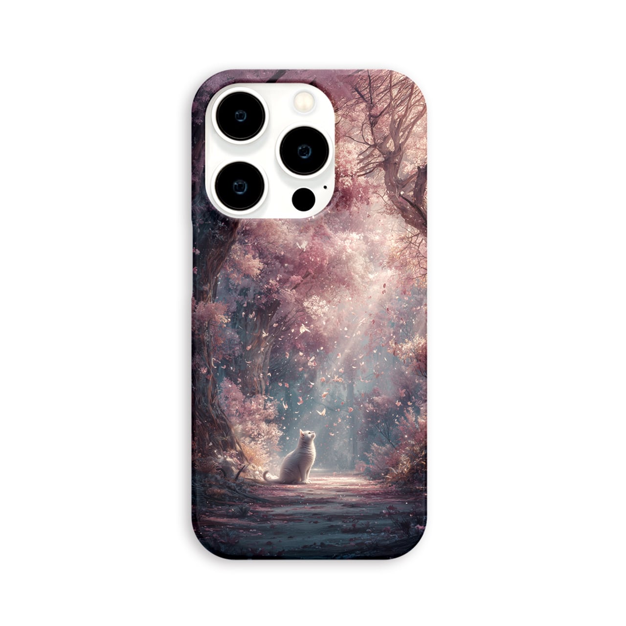 春光の祝福 | iPhone17/16/15/14/13 全機種対応 Android スマホケース 森 桜 白猫 春
