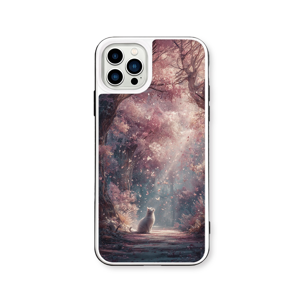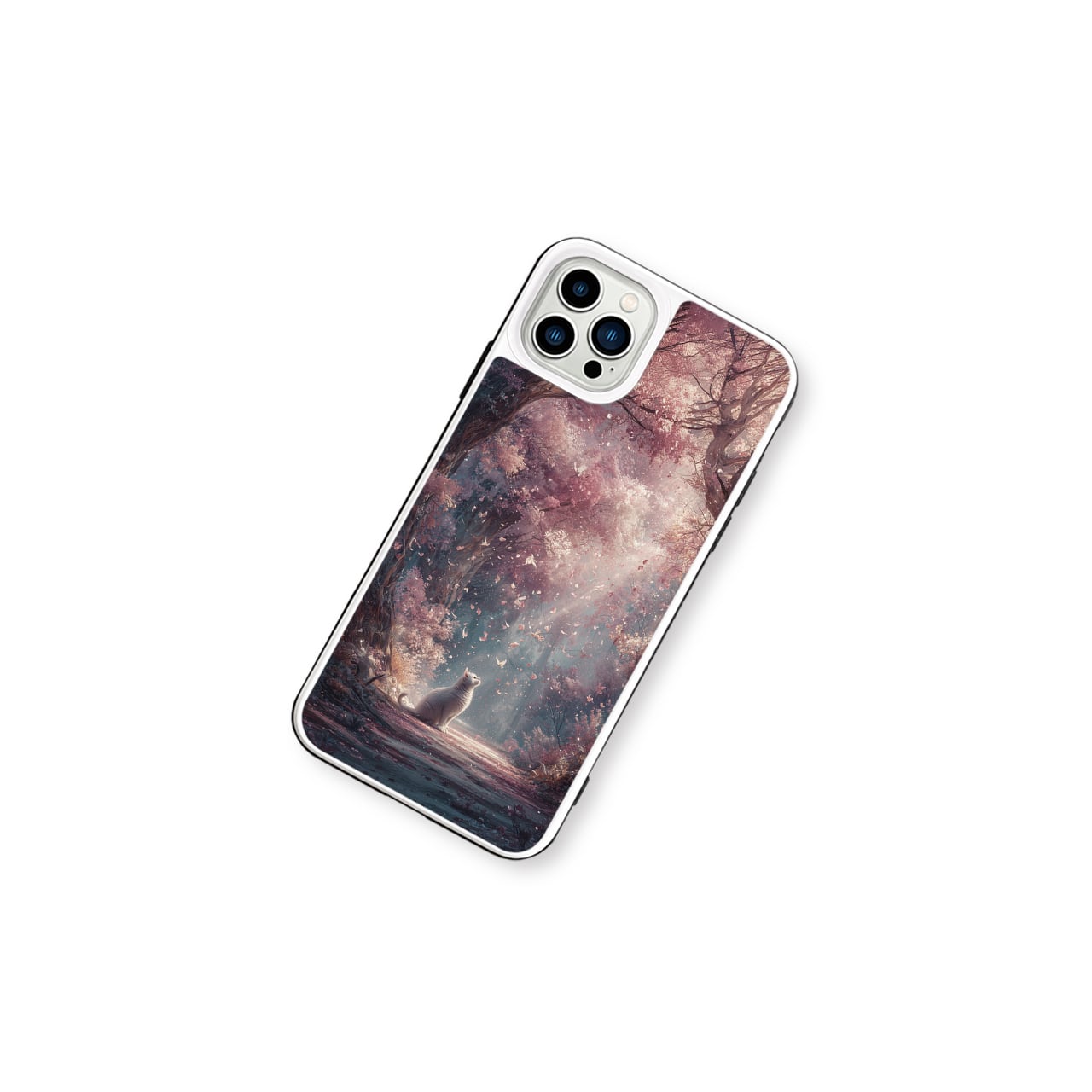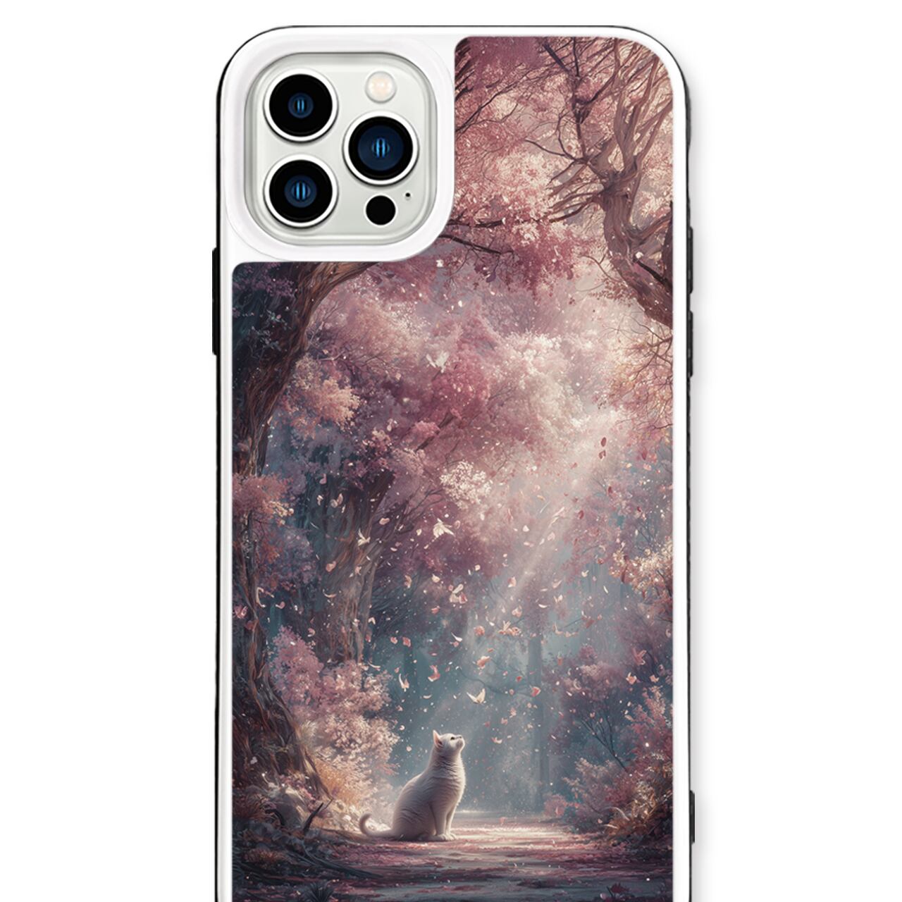 春光の祝福 |iPhone17/16/15/14/13 全機種対応 強化ガラス スマホケース 森 桜 白猫 春