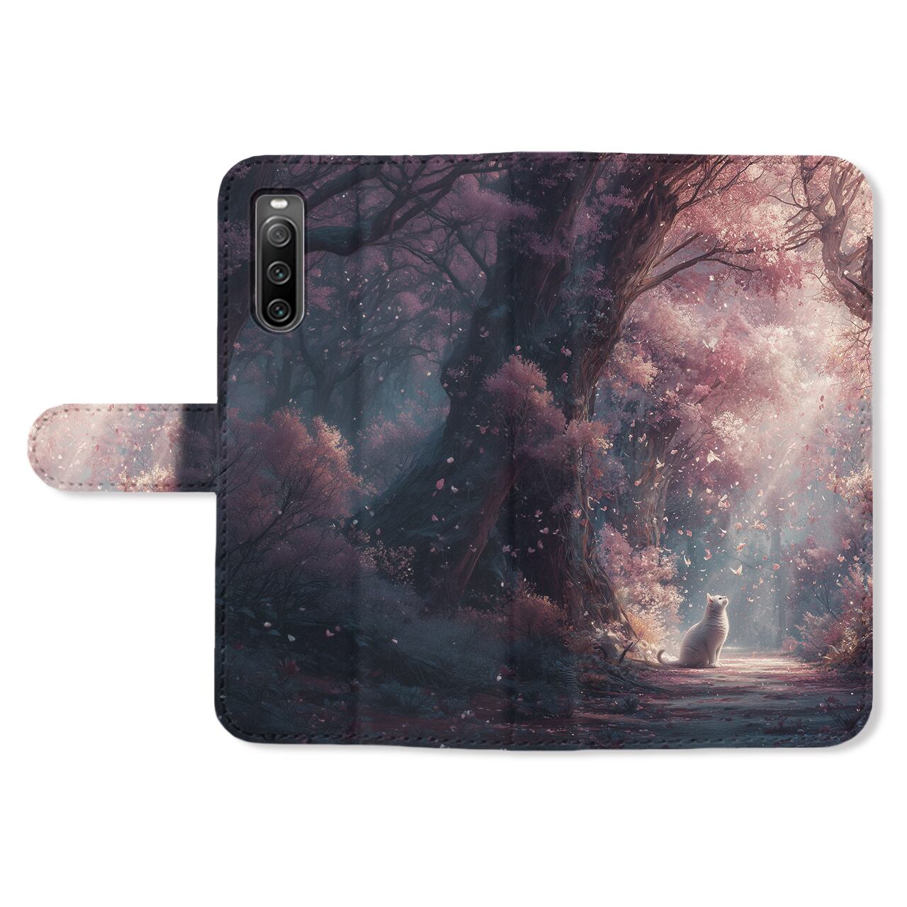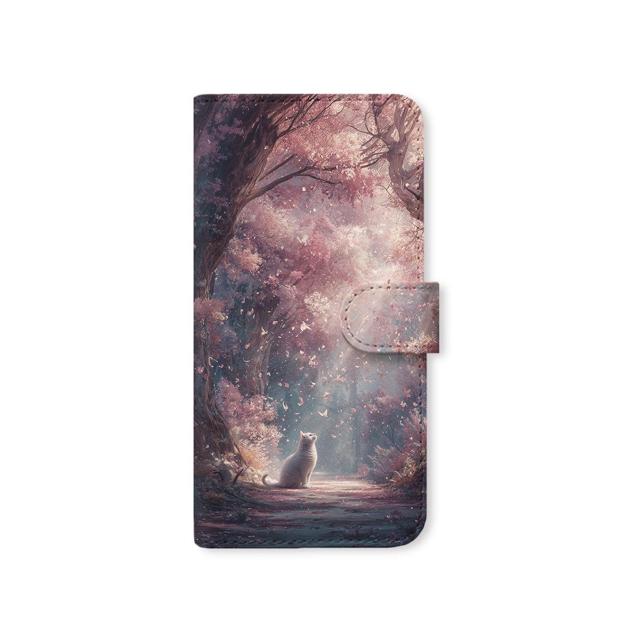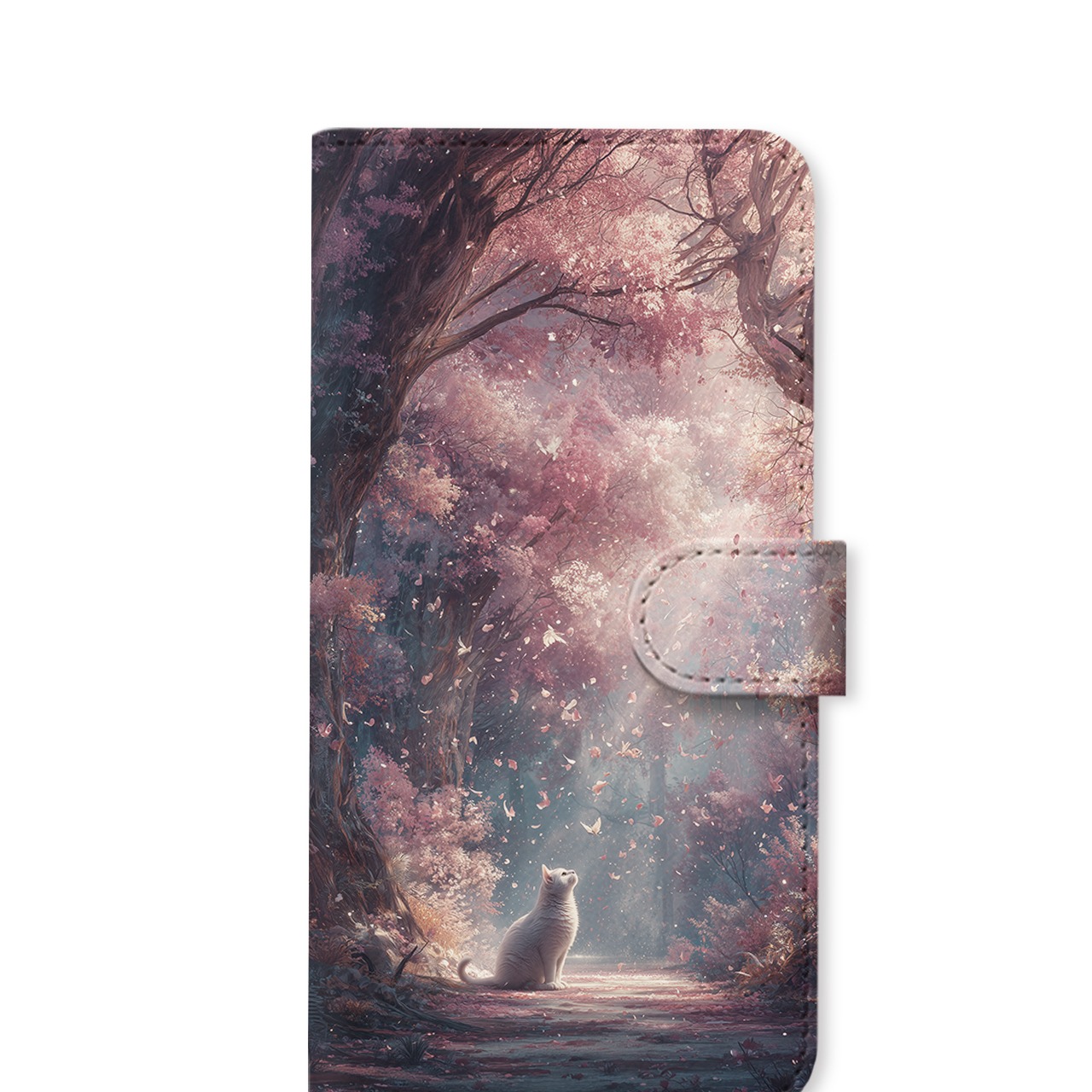 春光の祝福 | iPhone17/16/15/14/13 全機種対応 Android スマホケース 森 桜 白猫 春