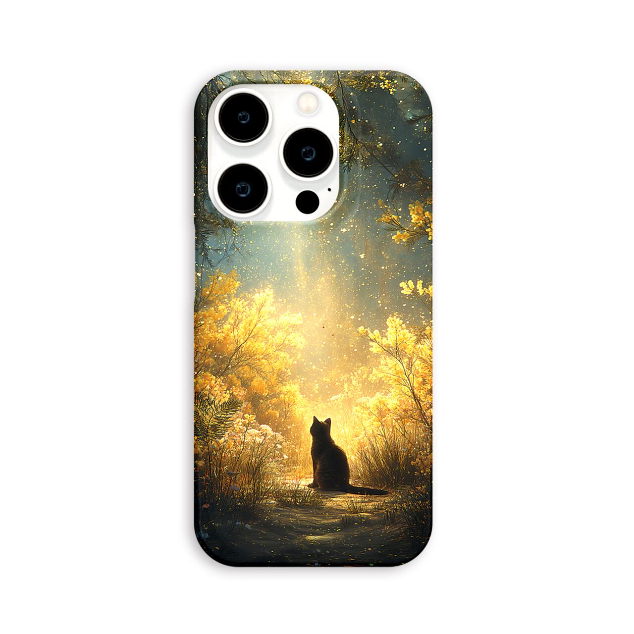 黄金の木漏れ日 | iPhone17/16/15/14/13 全機種対応 Android スマホケース ミモザ 黒猫 春