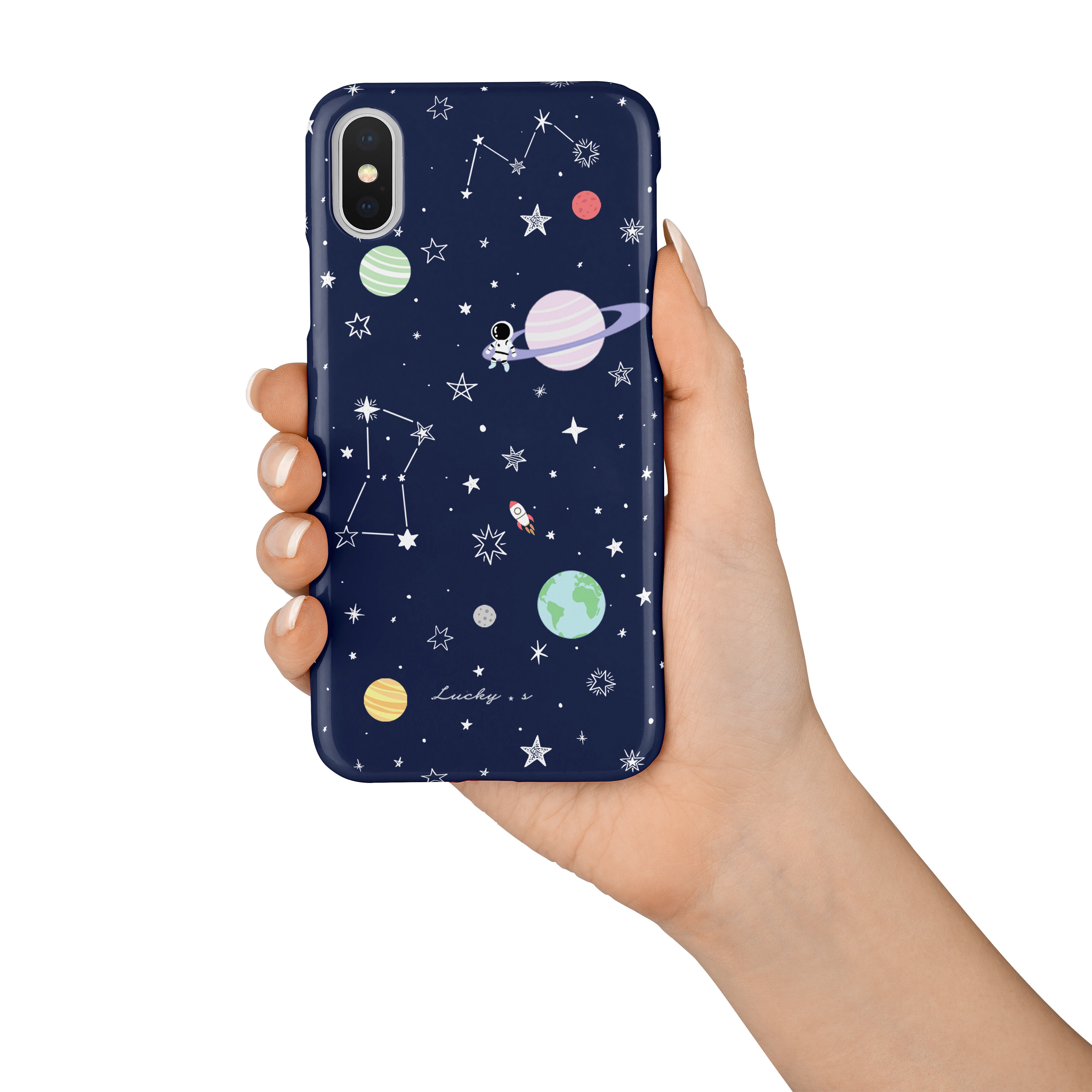 カラフルな惑星に星座、様々な形の星々が散りばめられたiPhone・Android用のハードケースです。