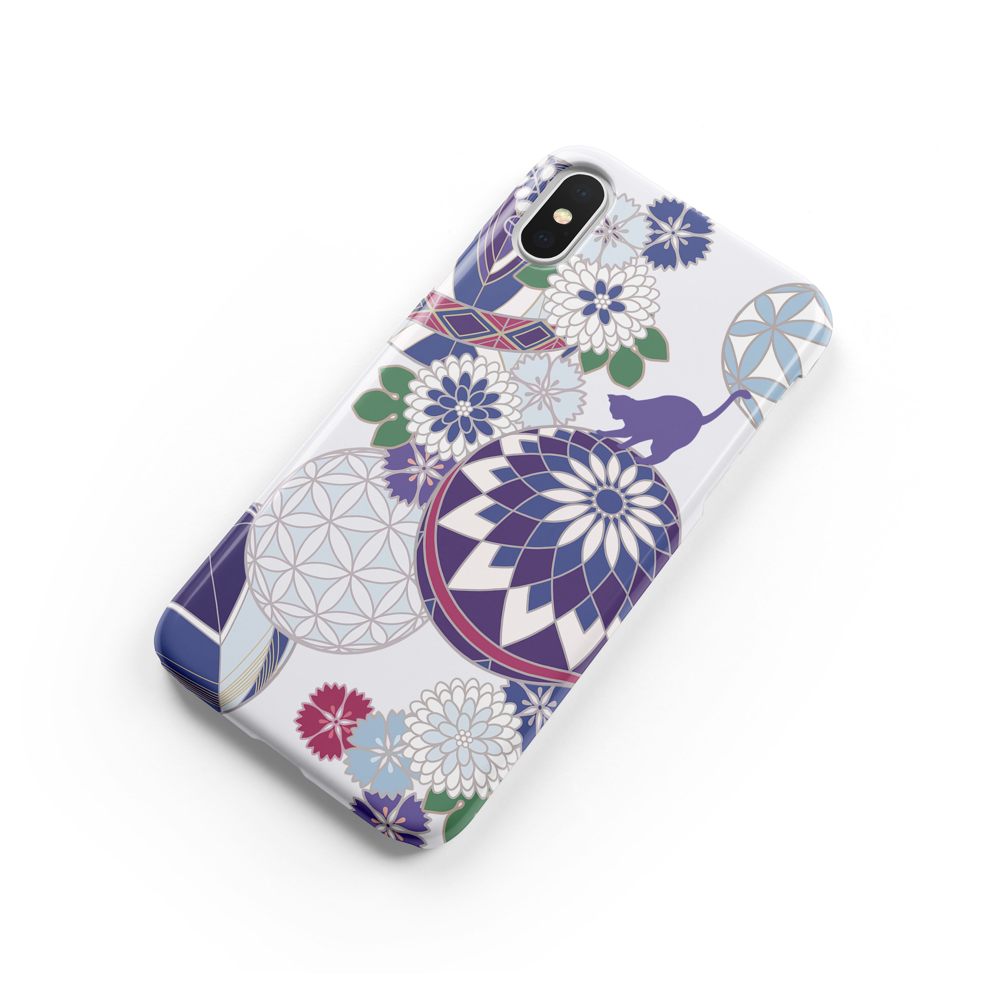 毬で遊ぶ猫を和柄風にデザインしたハードケースです。