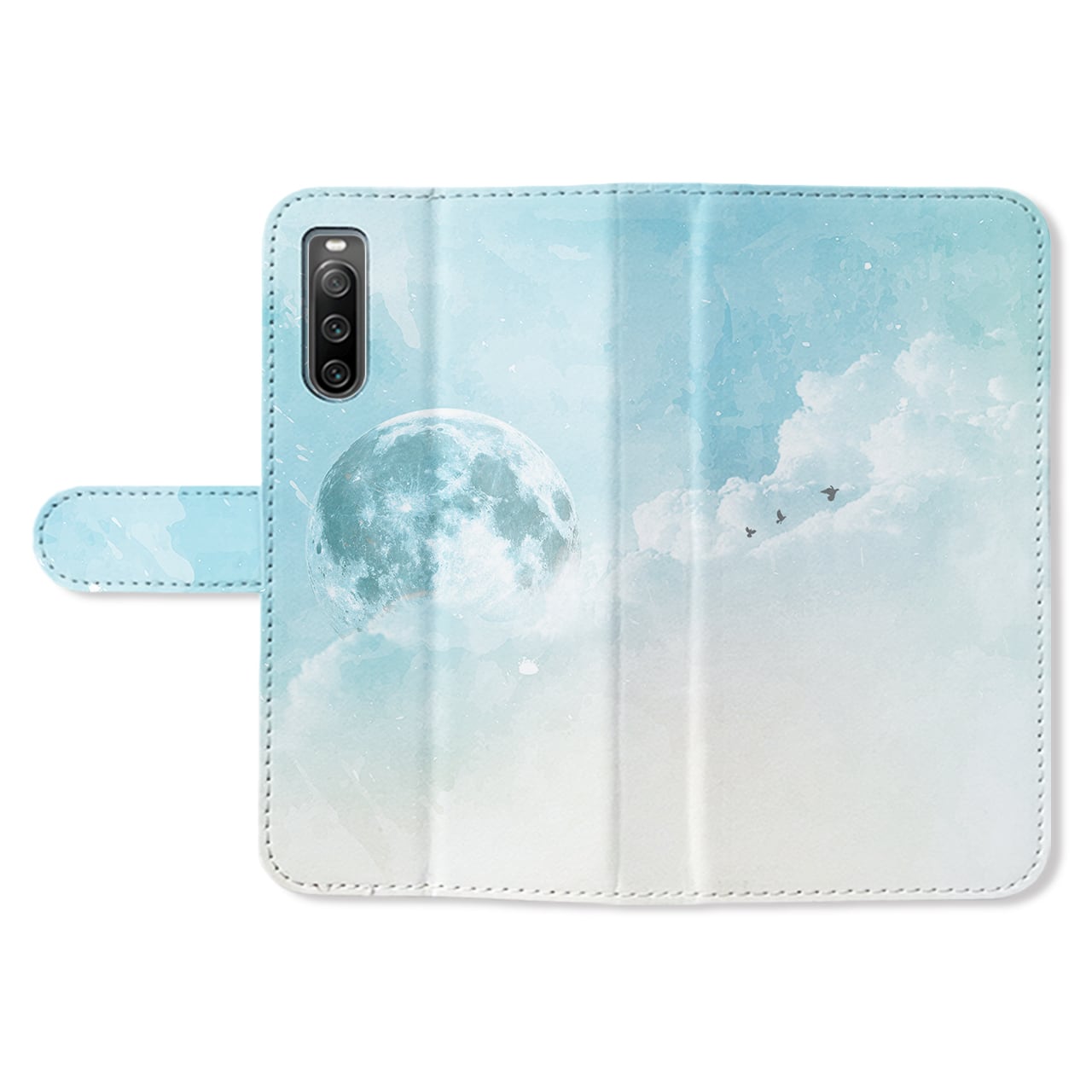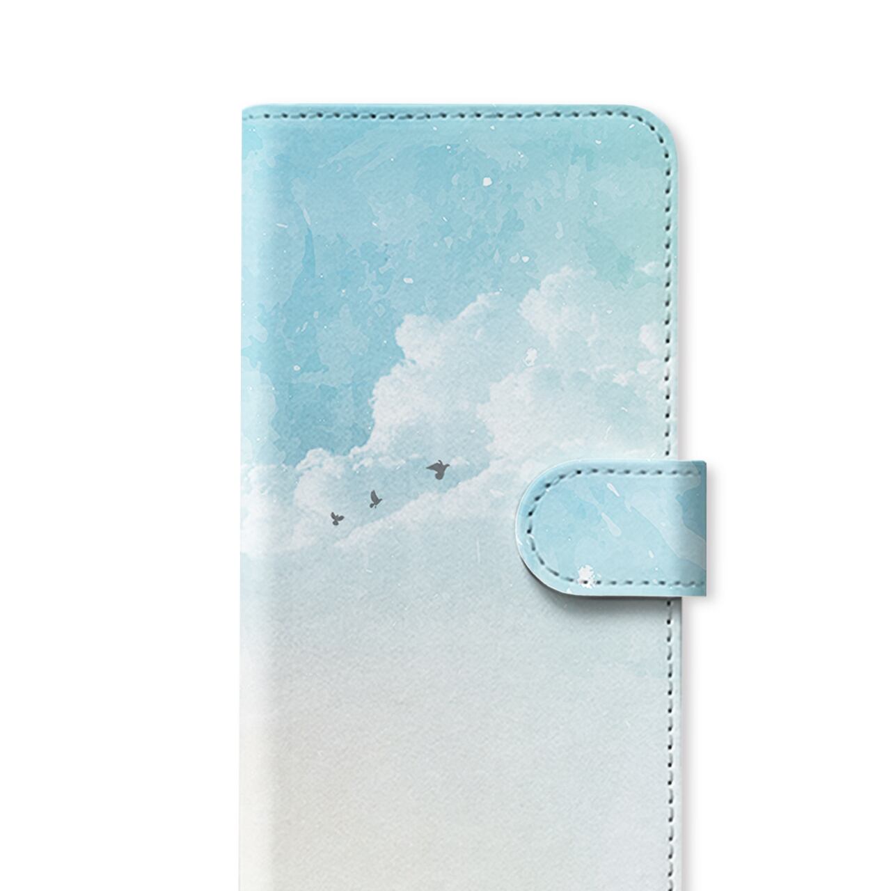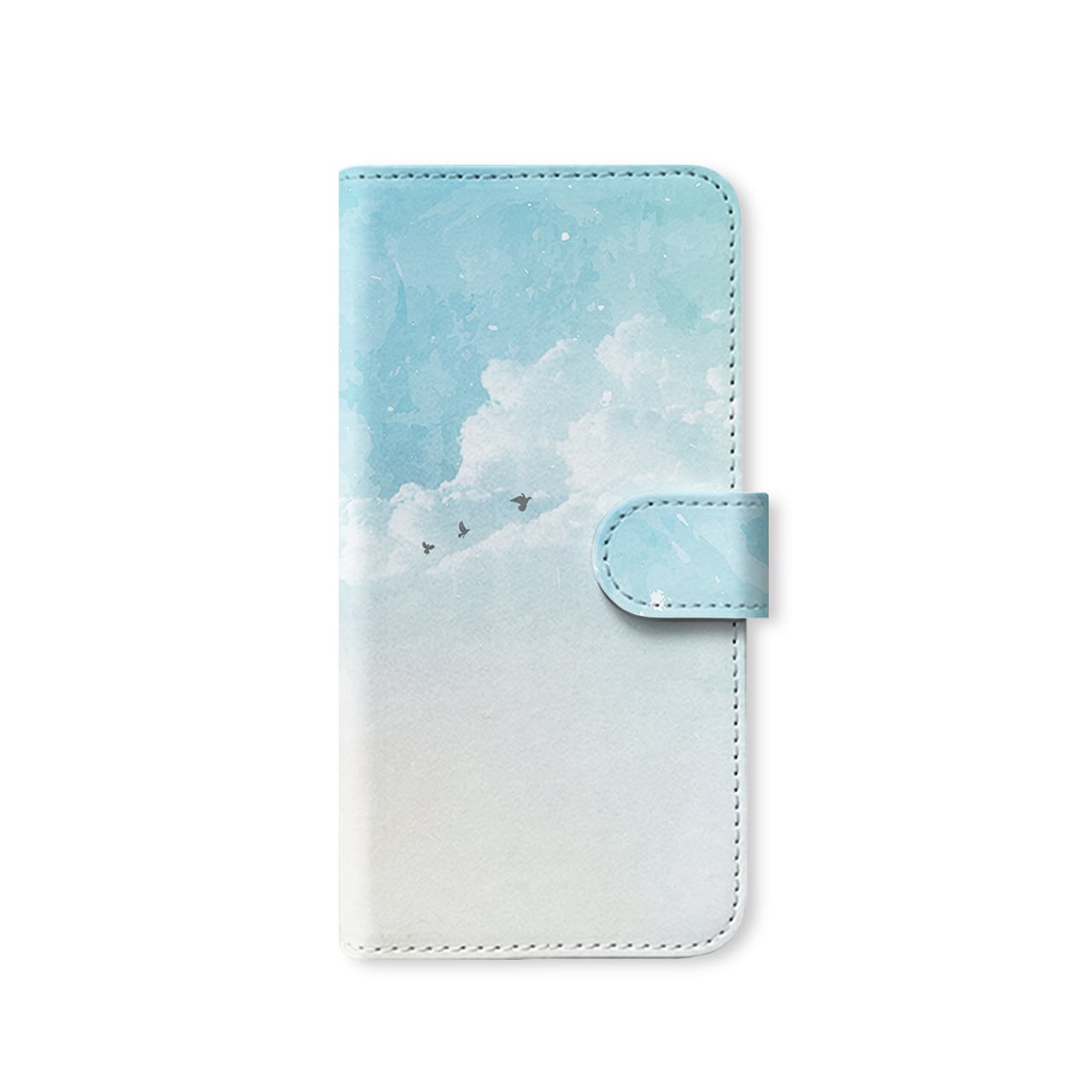 澄み空の幻月 全機種対応 スマホケース ベルトタイプ手帳型 空 水彩 雲 鳥 iPhone17/16/15/14/Android 爽やか