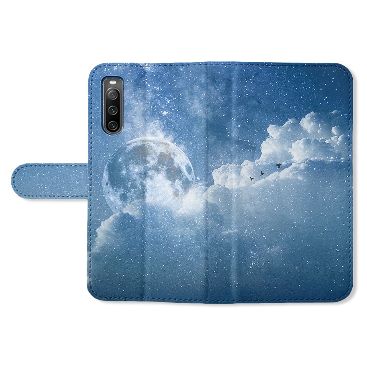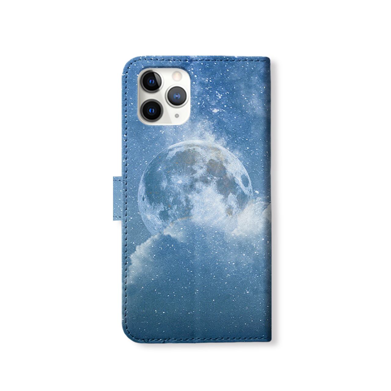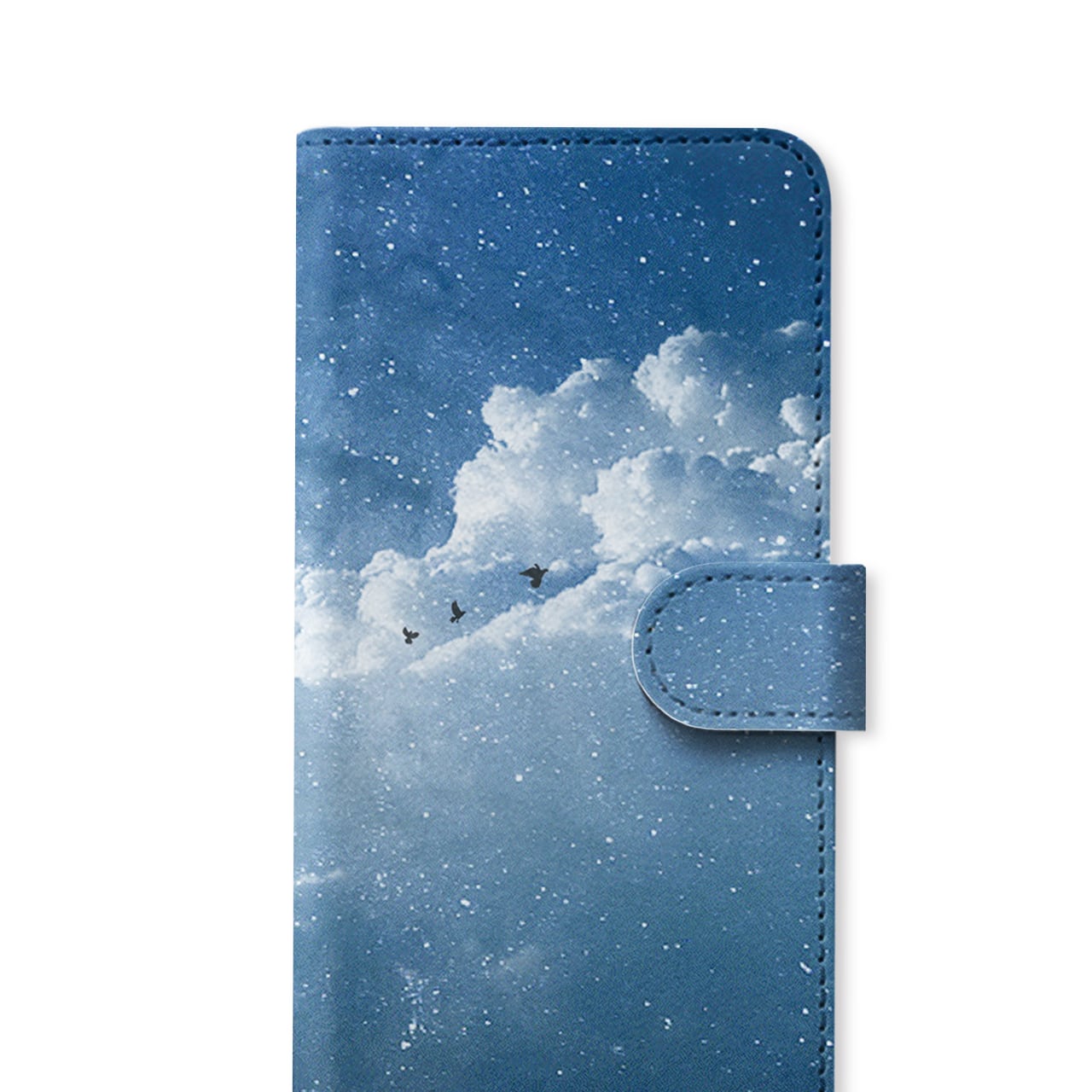 星屑の幻月 手帳型ケース スマホケース ほぼ全機種対応 はめ込み式 夏 雲 鳥 月 満月 空 星空 青