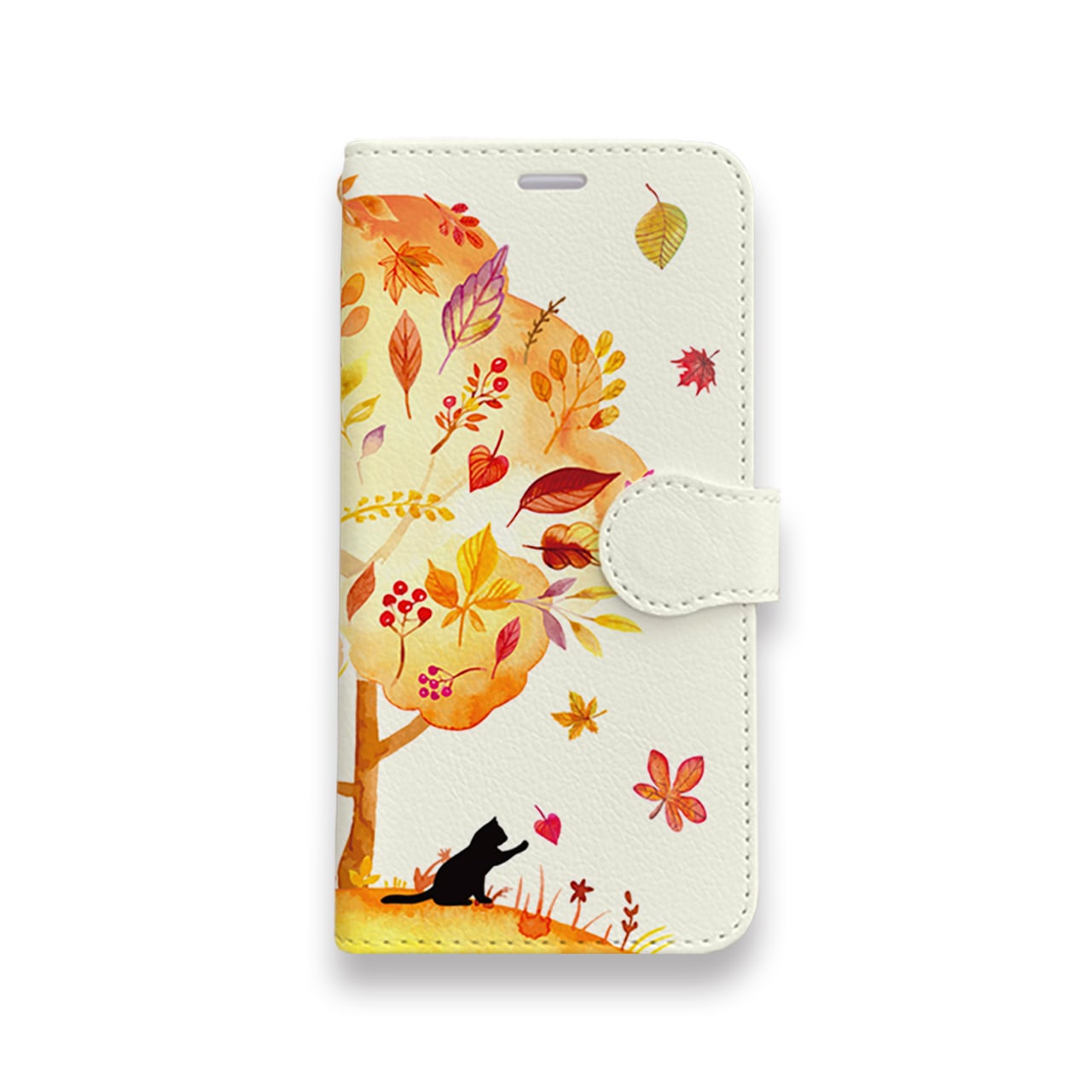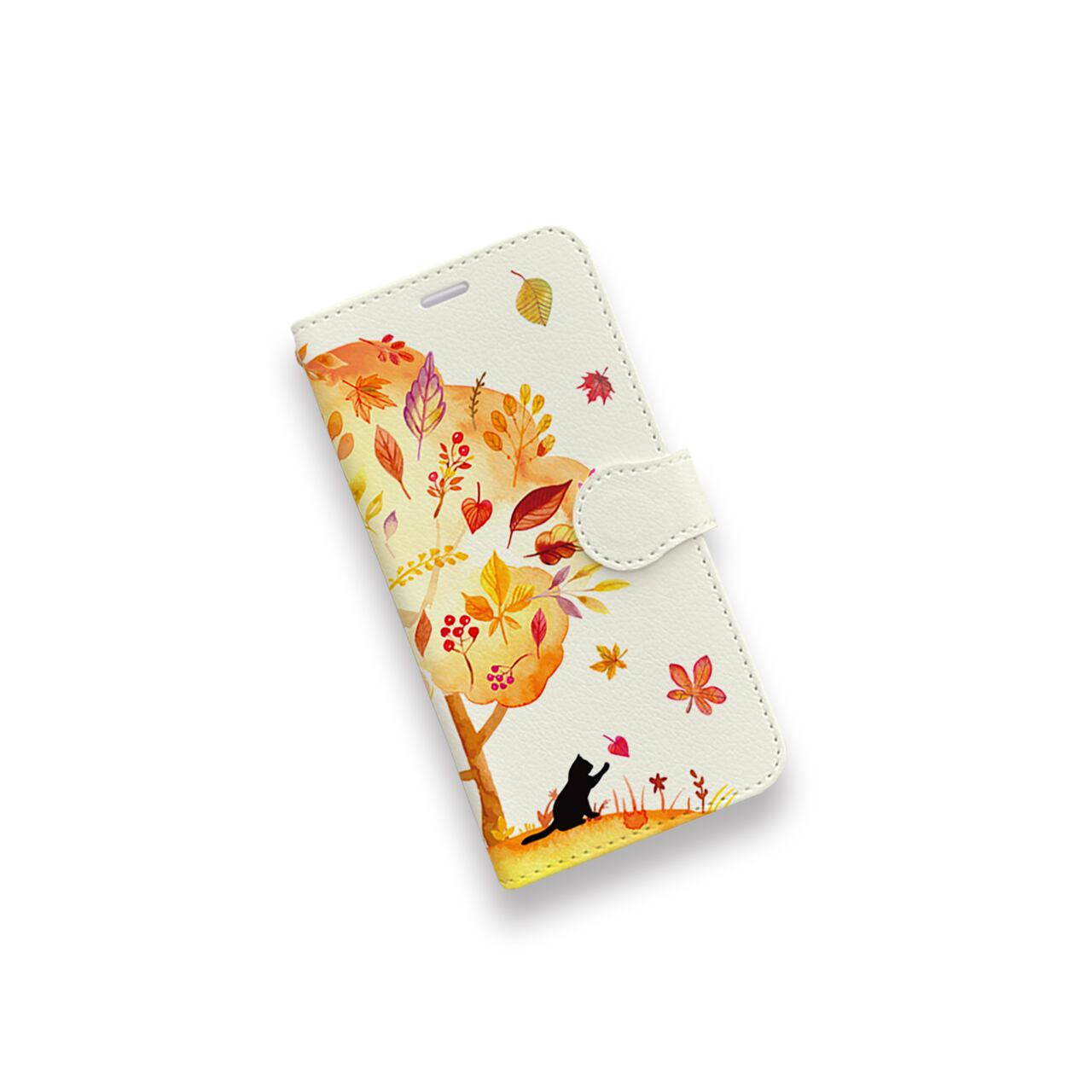 黒猫と一緒に秋を存分に楽しみたい方のために作成したiPhone・Android用の手帳型ケースです。