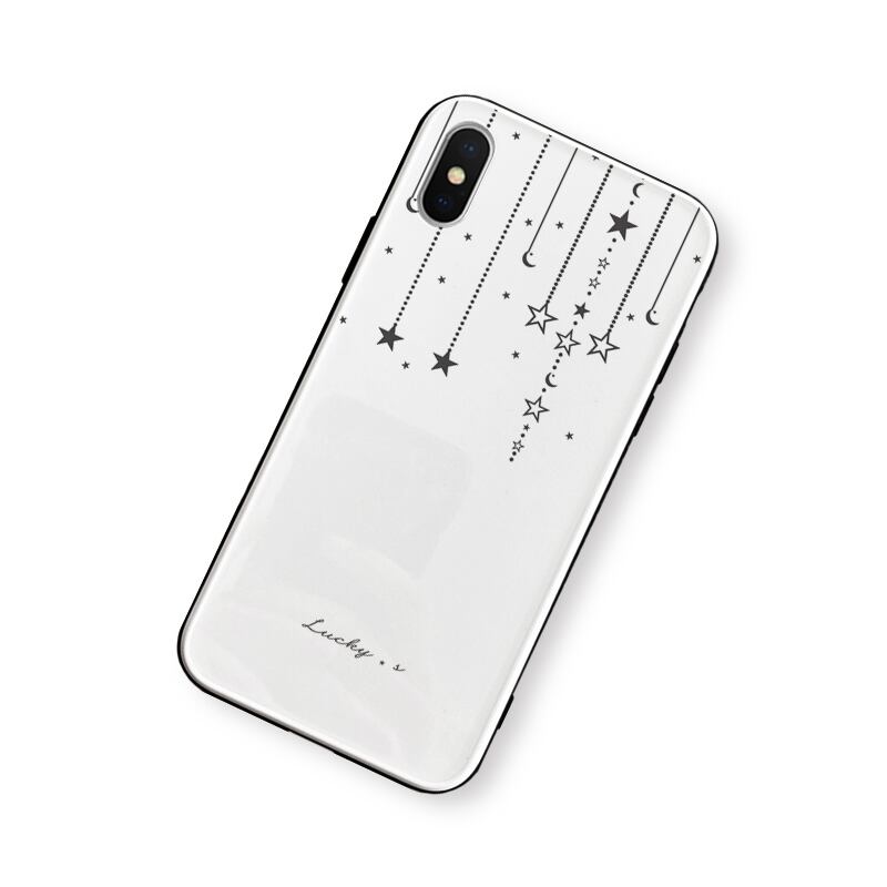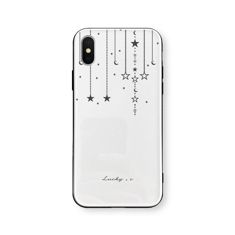 頭上より降り注ぐ星や月をチェーンによって表現したスマホケースです。