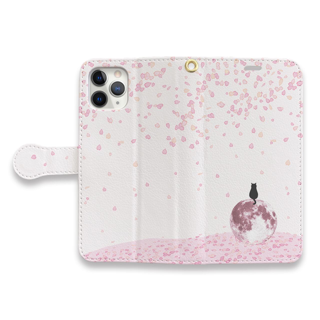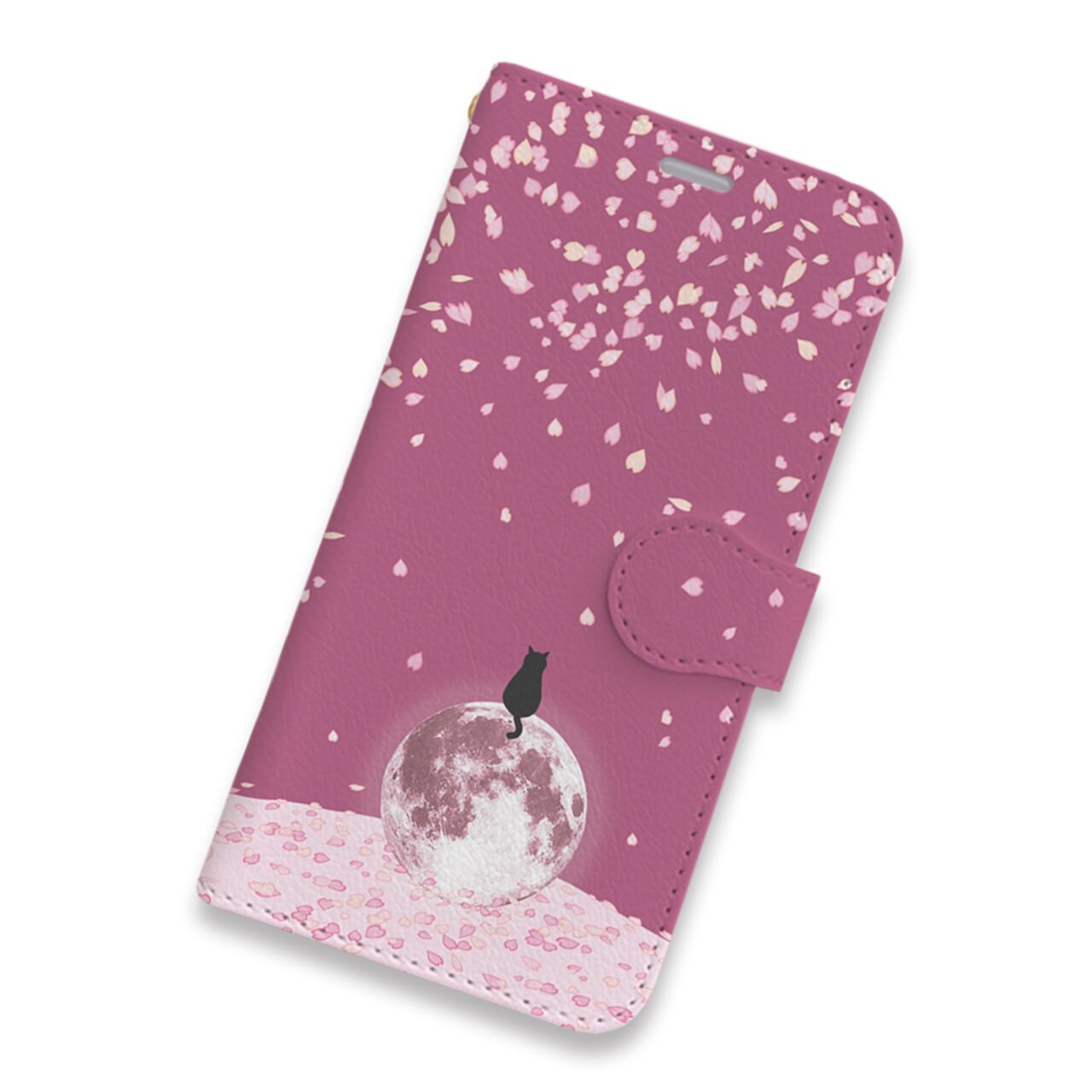 月と猫 (桜 ver.) 手帳型ケース スマホケース