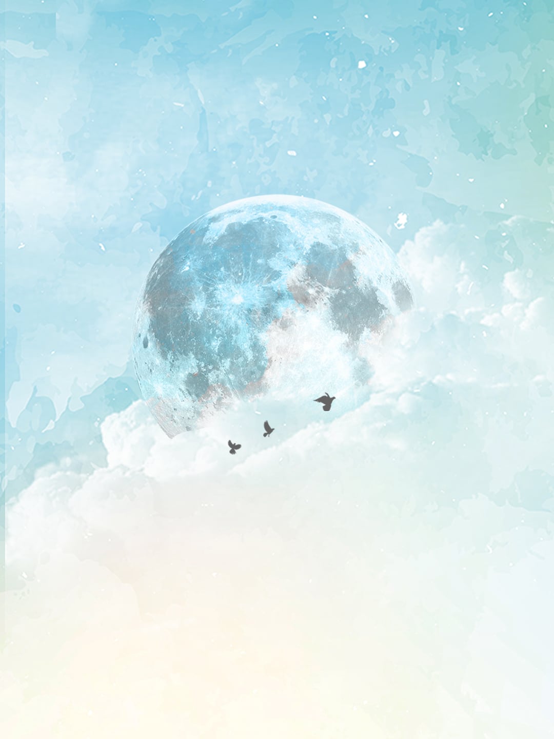 柔らかな雲のベッドに抱かれた巨大な月は、すべてを優しく包み込むような神秘的な光を放っています。