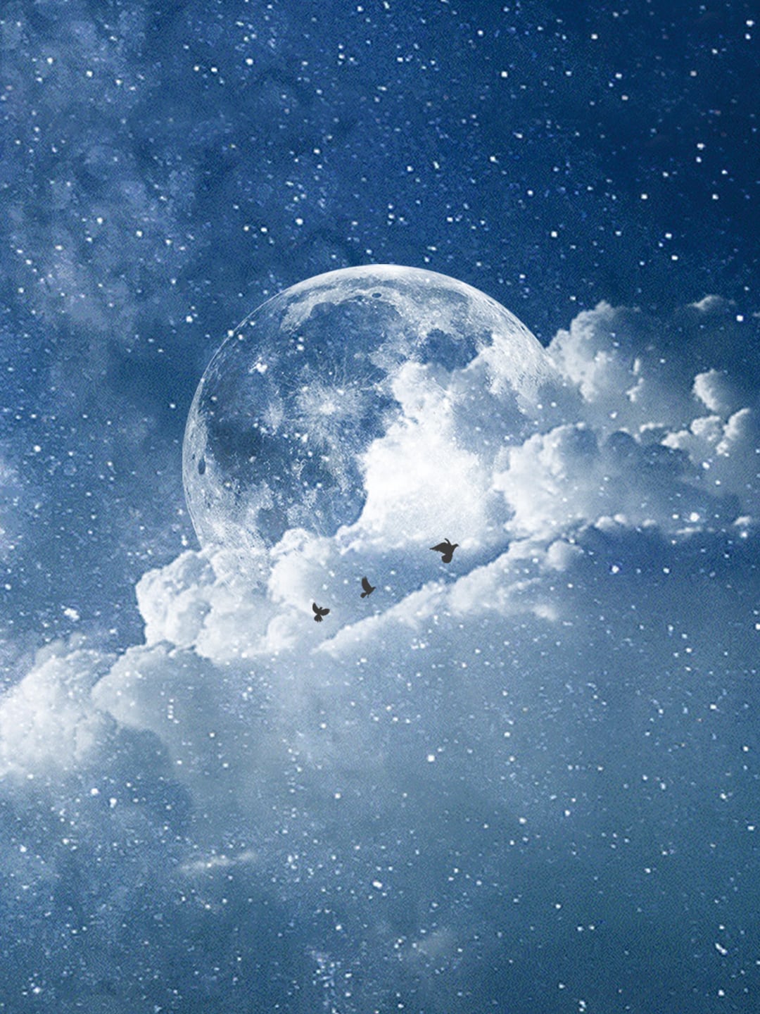 光に向かって羽ばたく三羽の鳥たちは、誰も知らない秘密の夜を旅する案内人。