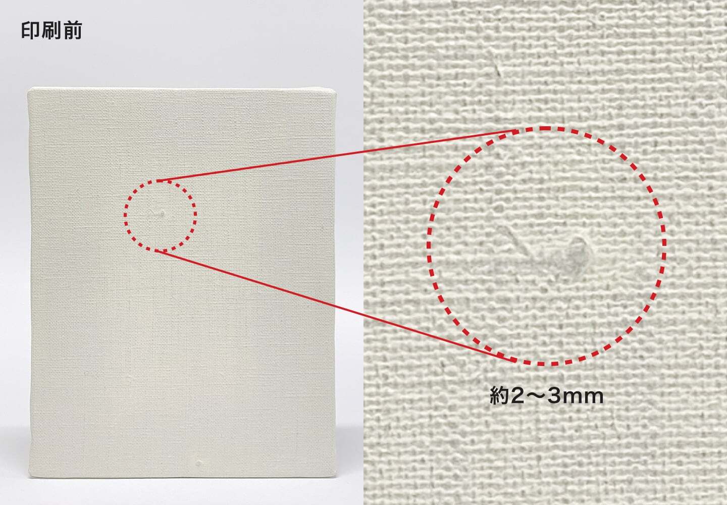 キャンバス特有の「生地の目(繊維)」があり、個体差はありますが、表面に約2~3mm程度の凹凸が混在することがあります。